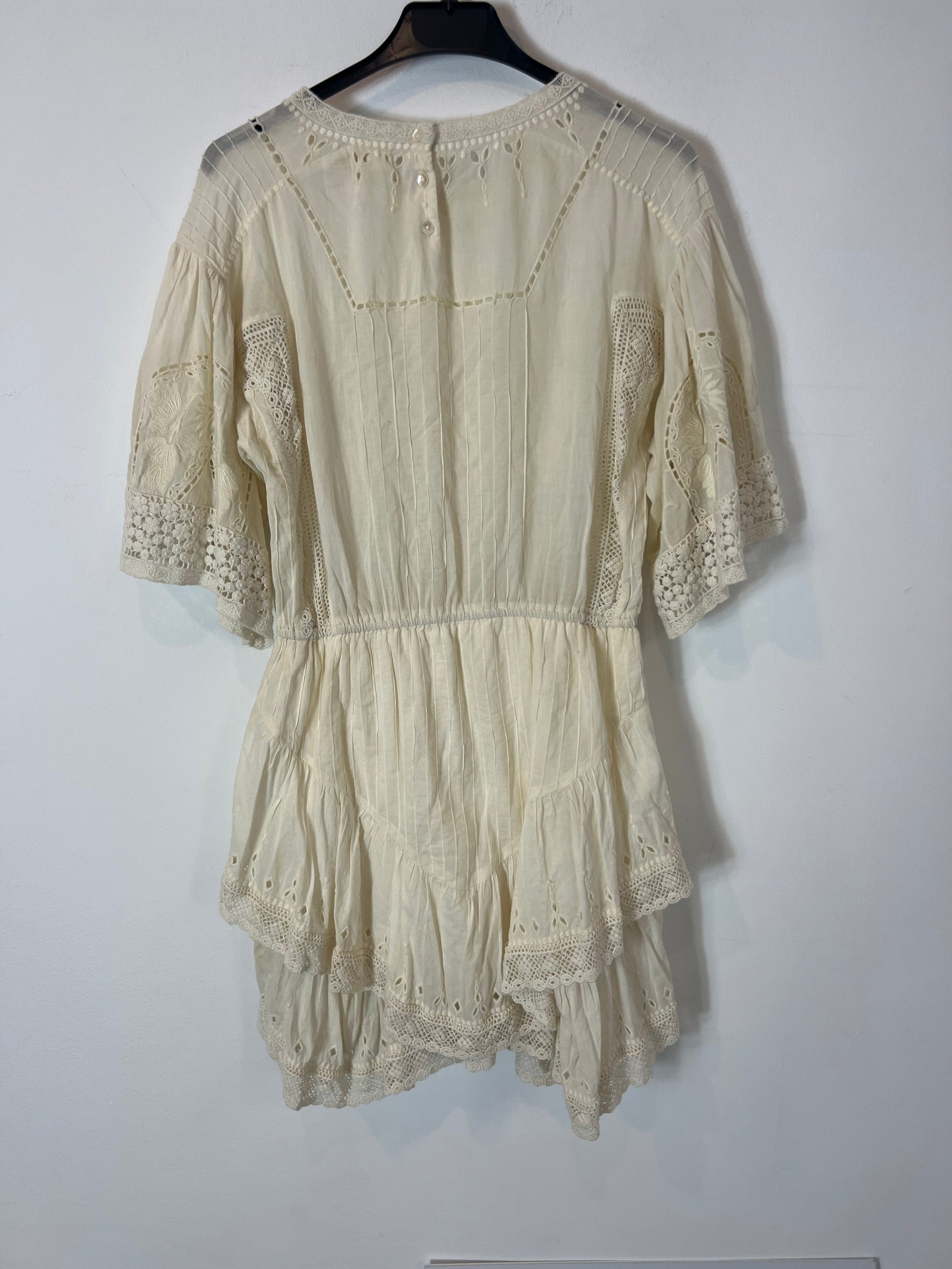 MAKSU. Vestido beige bordado y troquelado encajes T.s