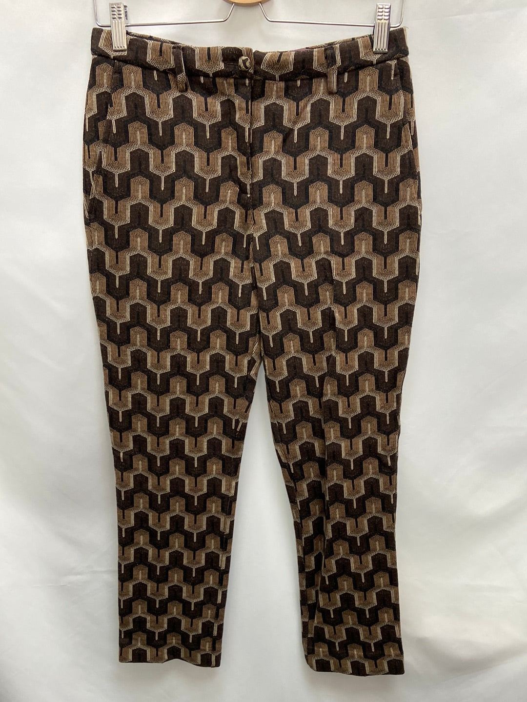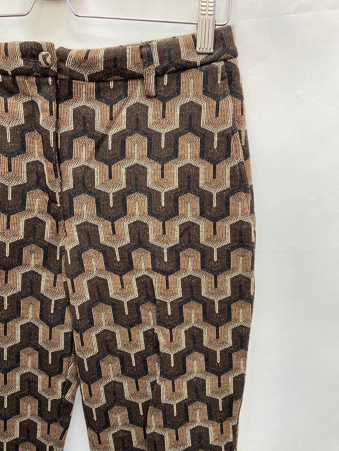 Pantalones lana estampado geométrico estilo Vintage. Rectos con doble botón y cremallera.