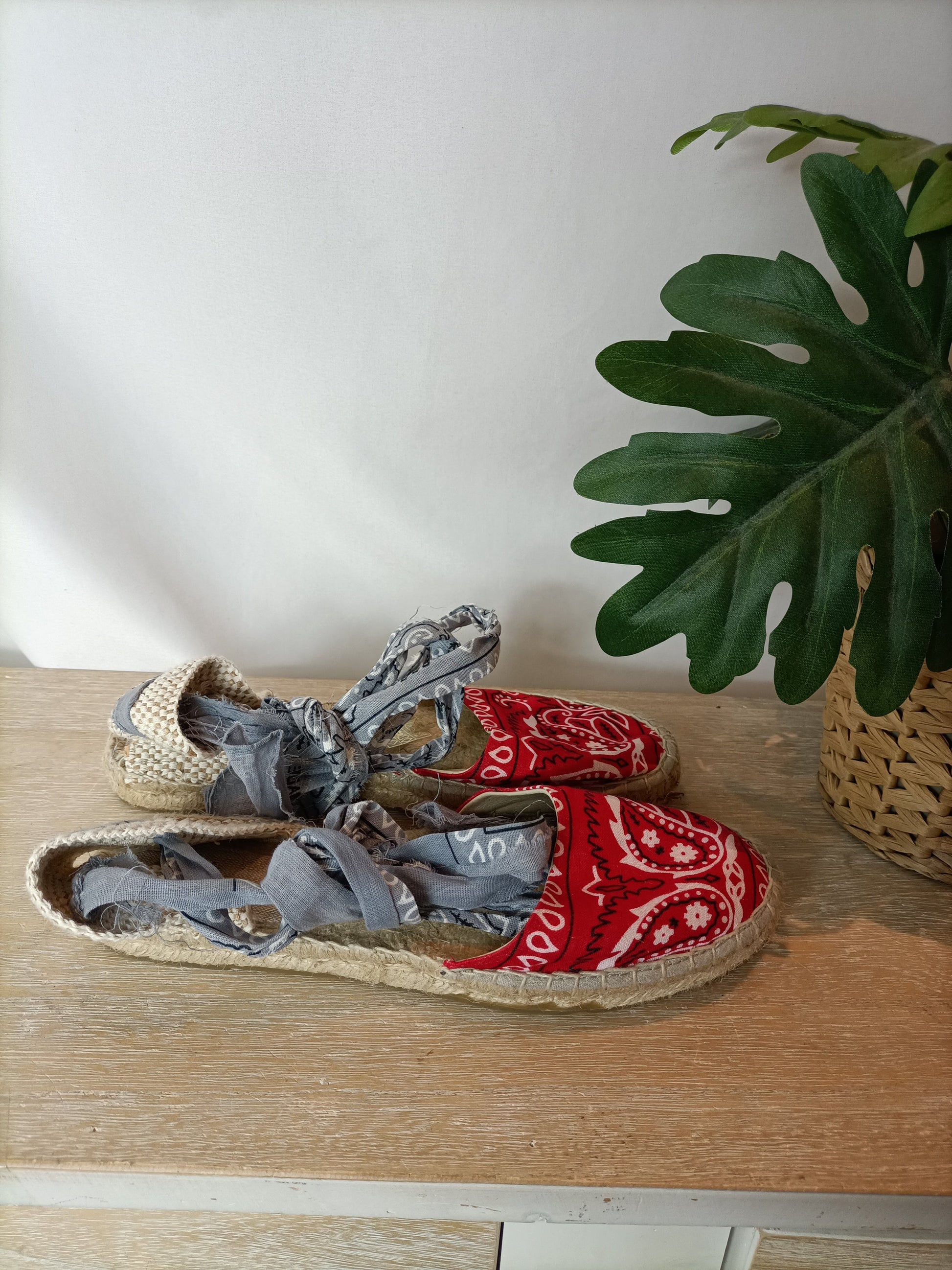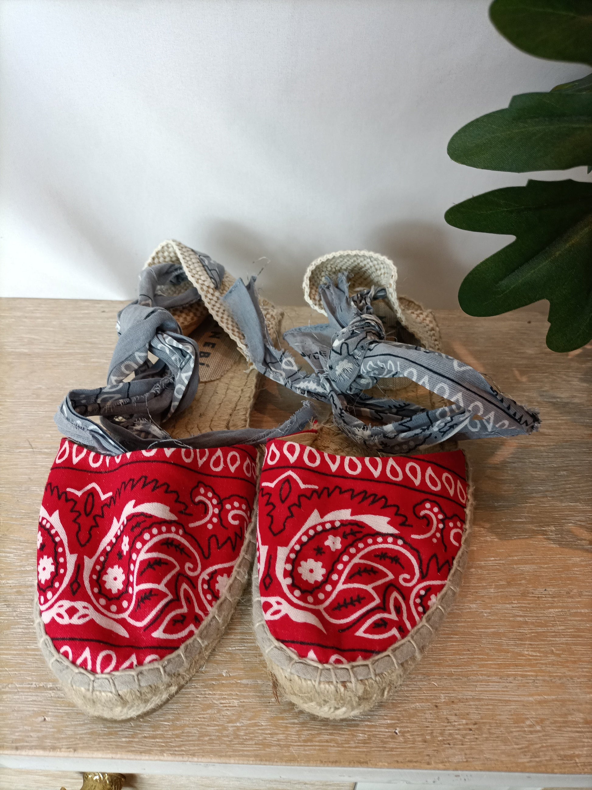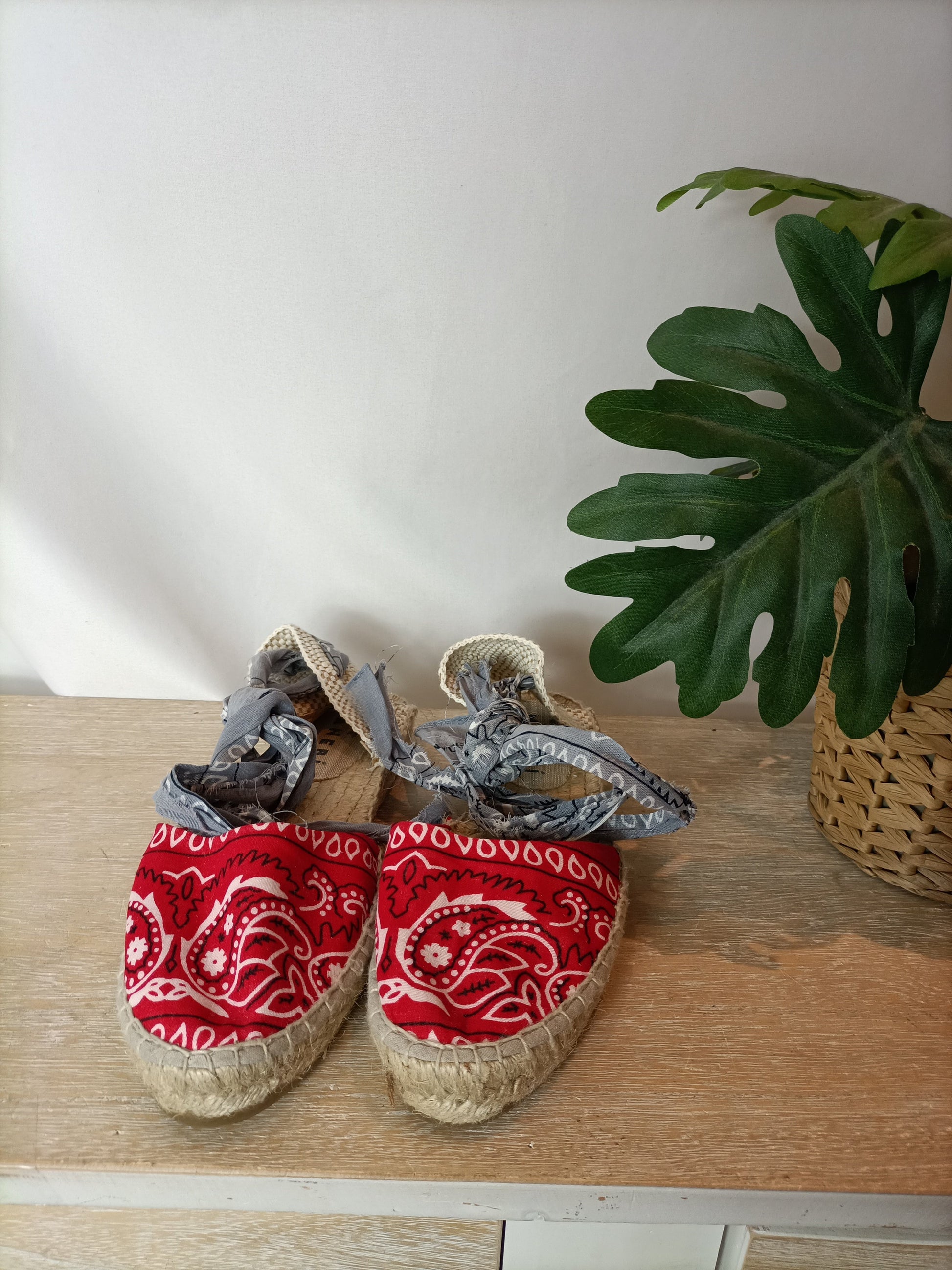 SIN ESTRENAR. Alpargatas rojas estilo pañuelo con doble tira.