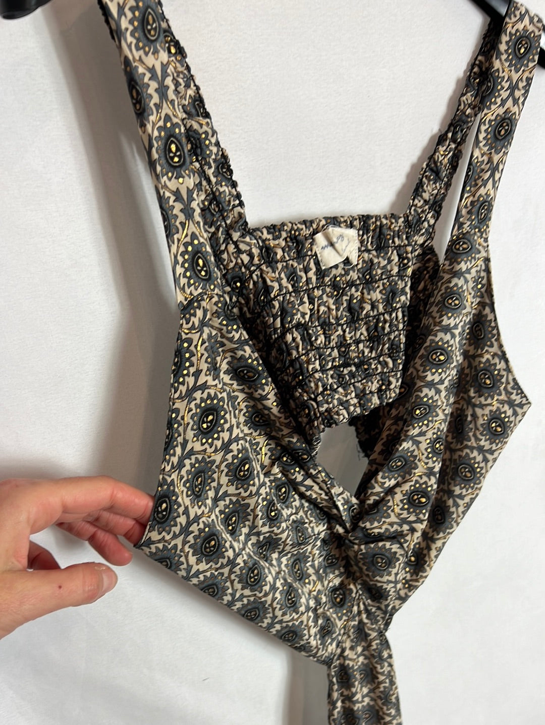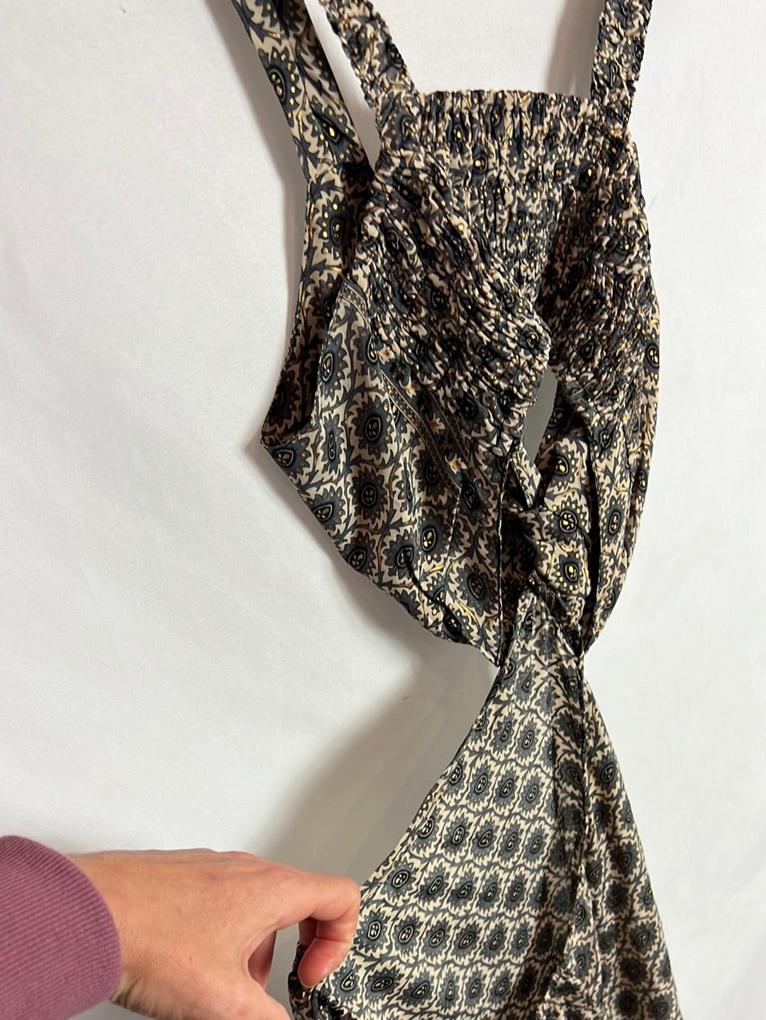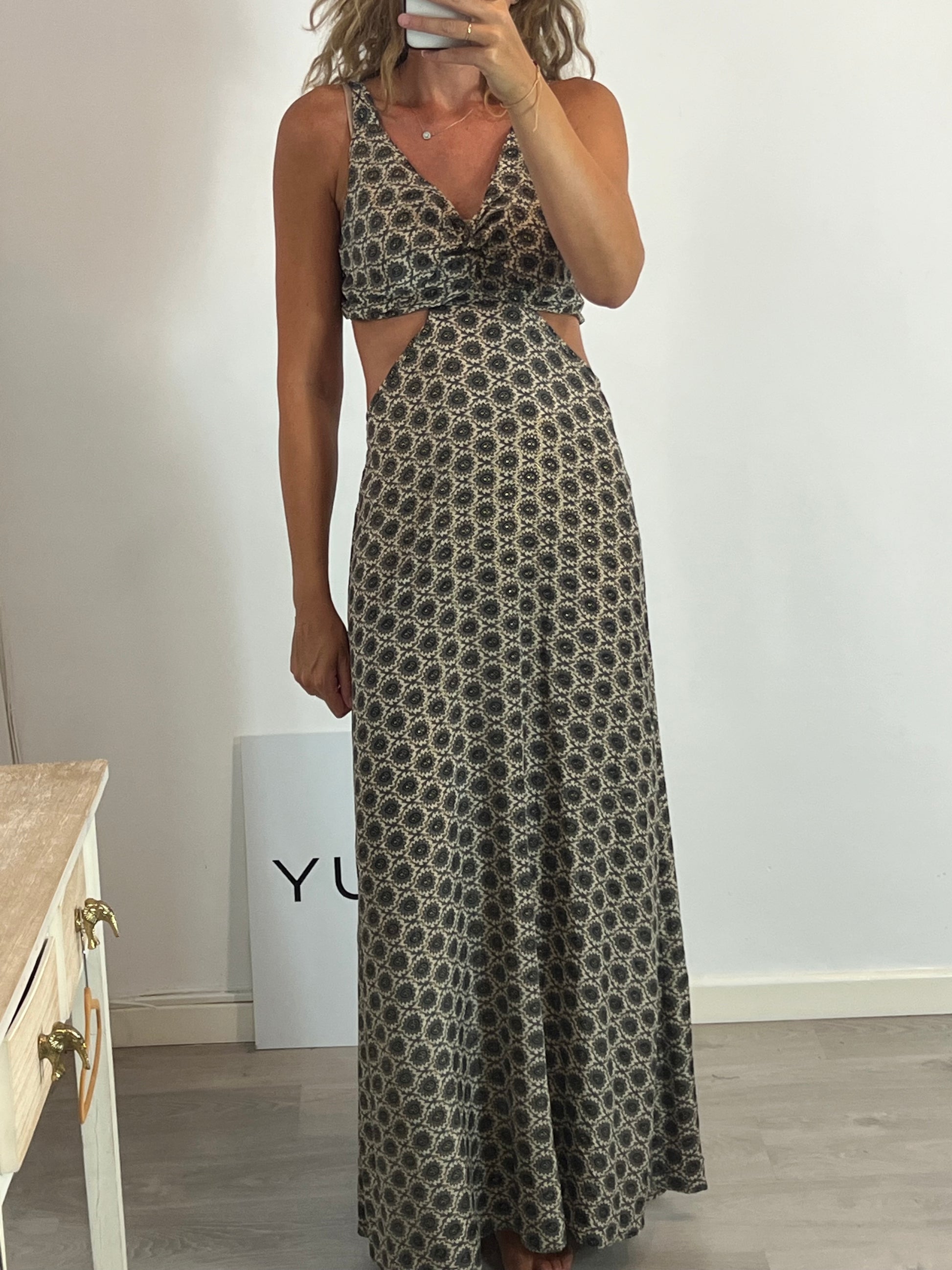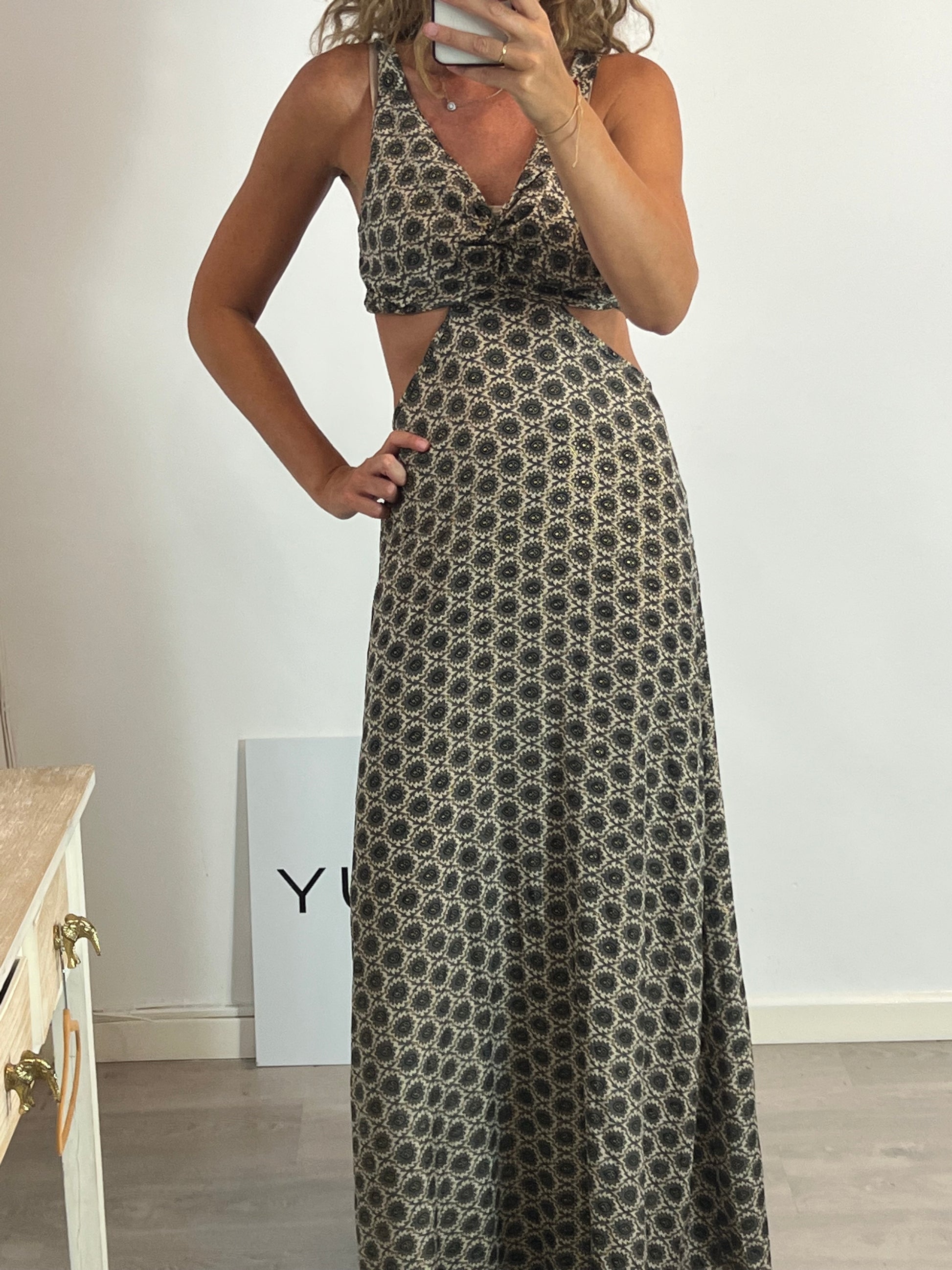 MANGALAM. Vestido largo seda estampado aperturas. T S/M