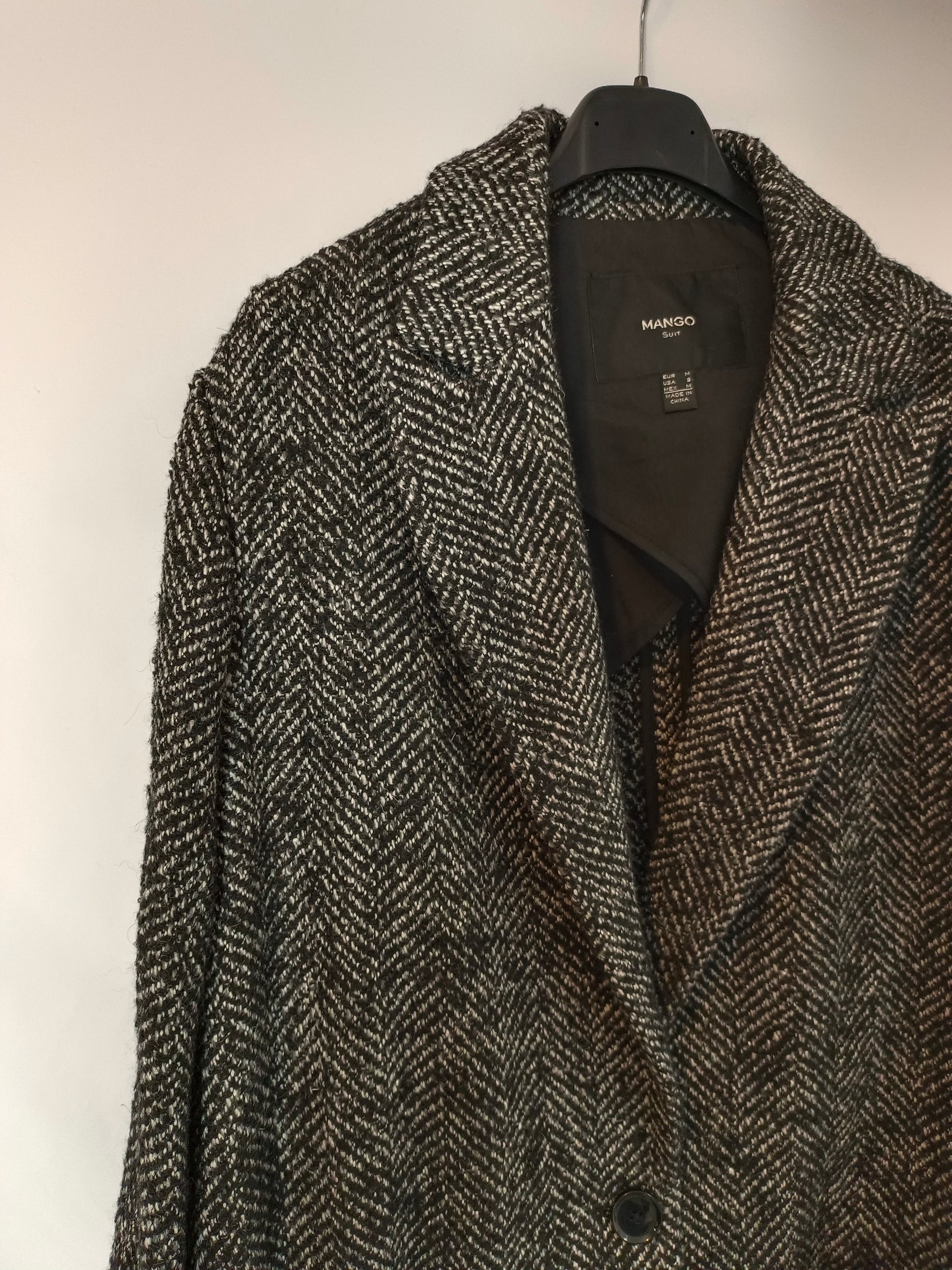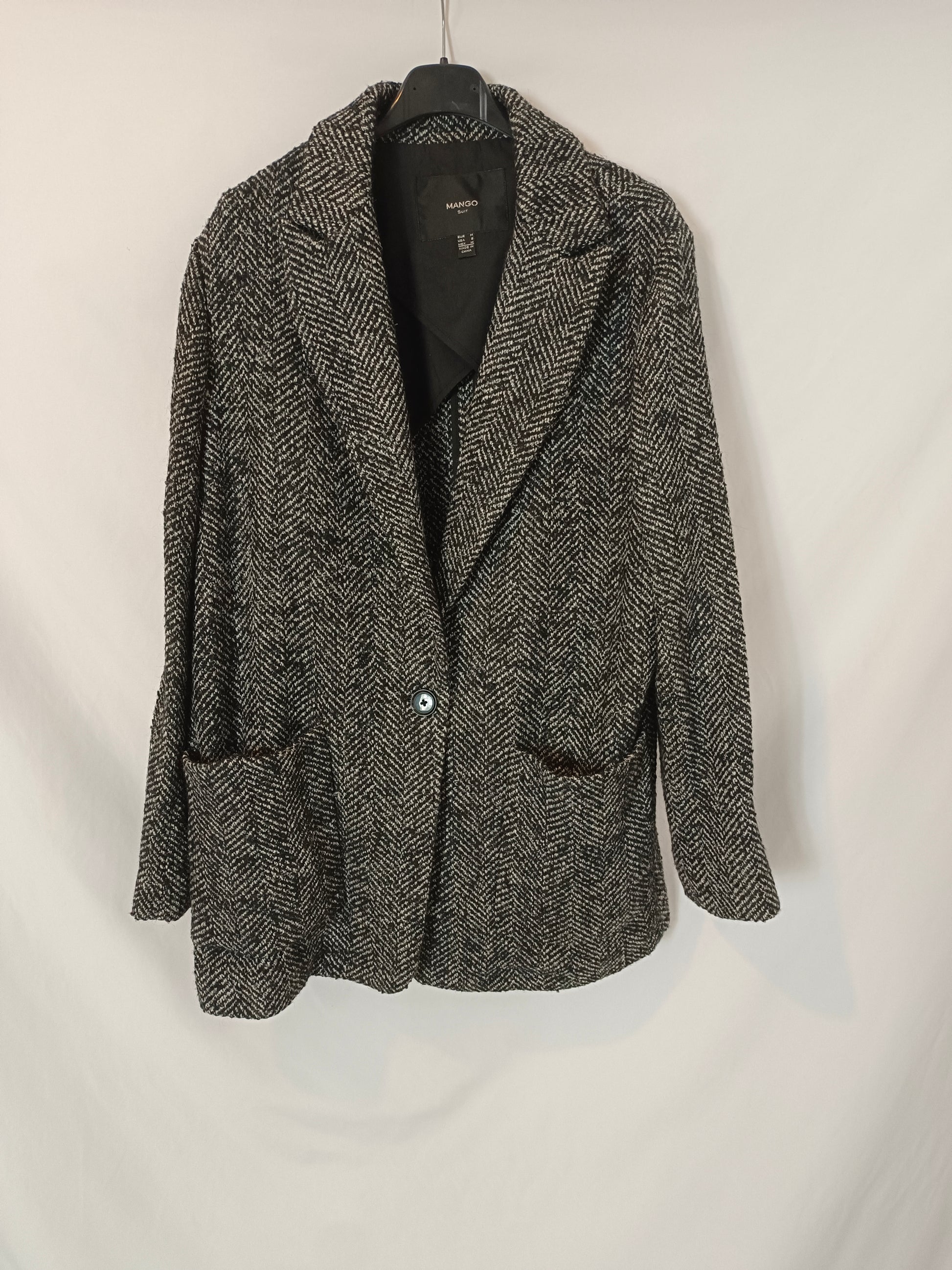 MANGO. Abrigo jaspeado negro T.m