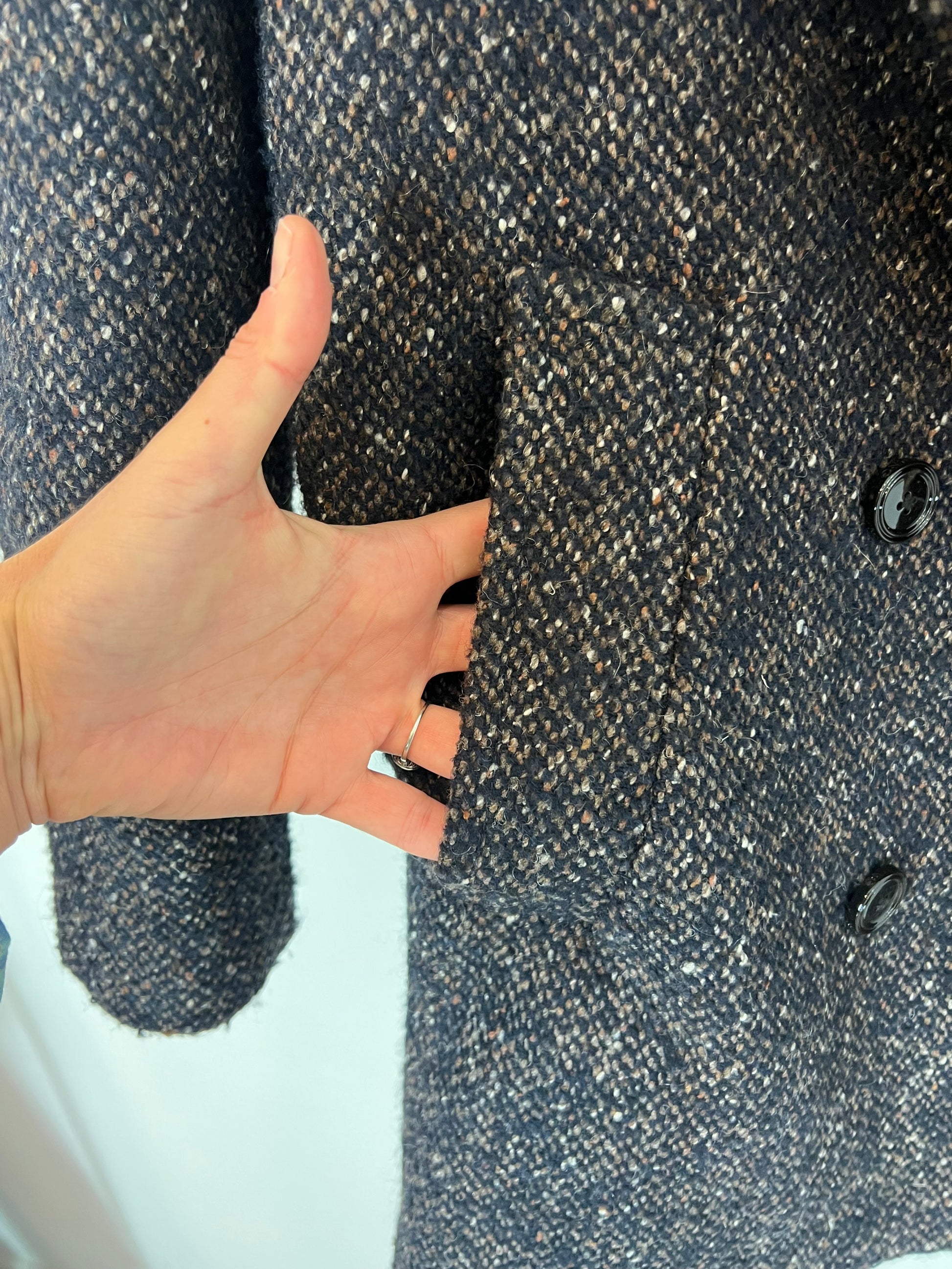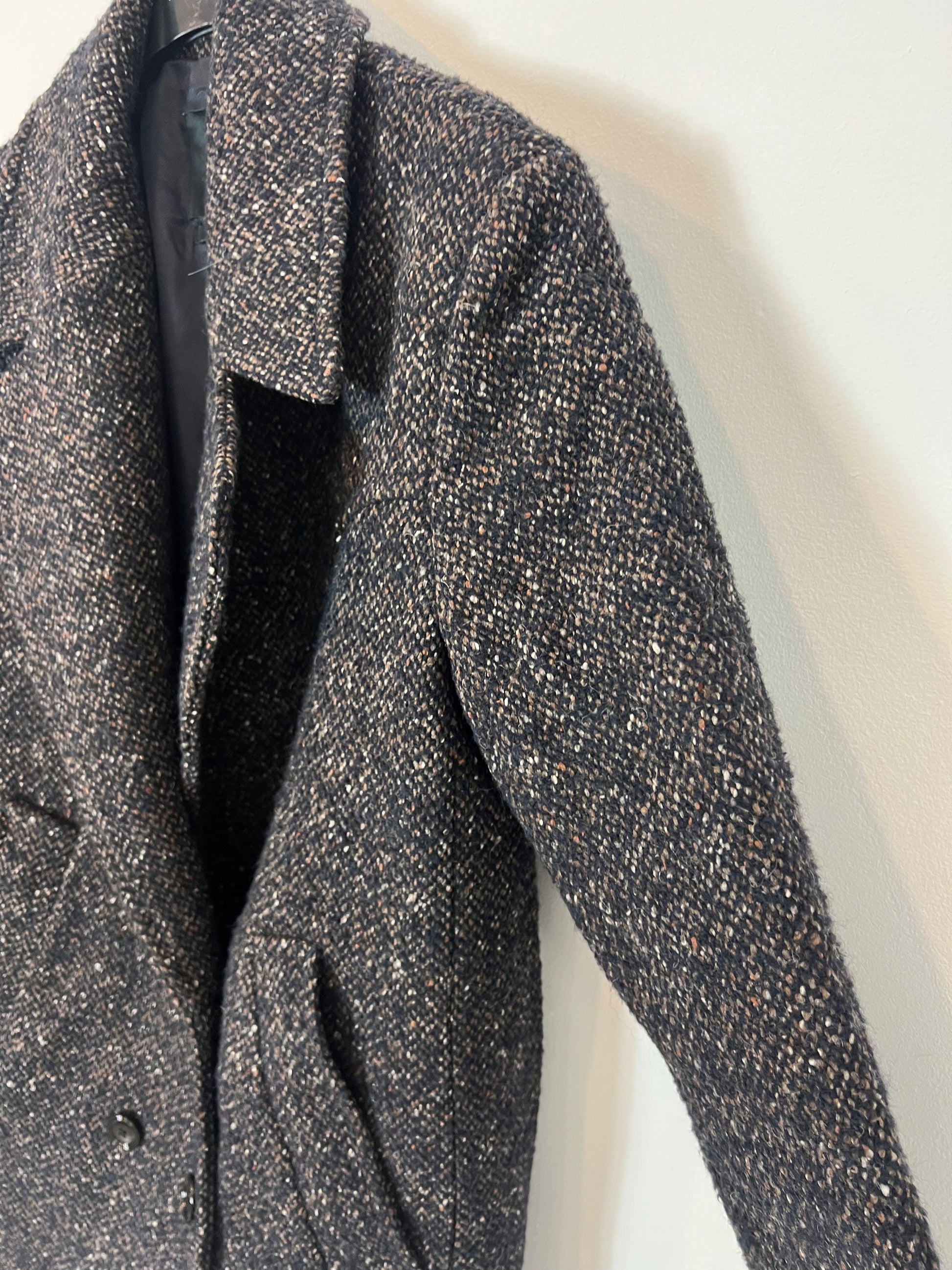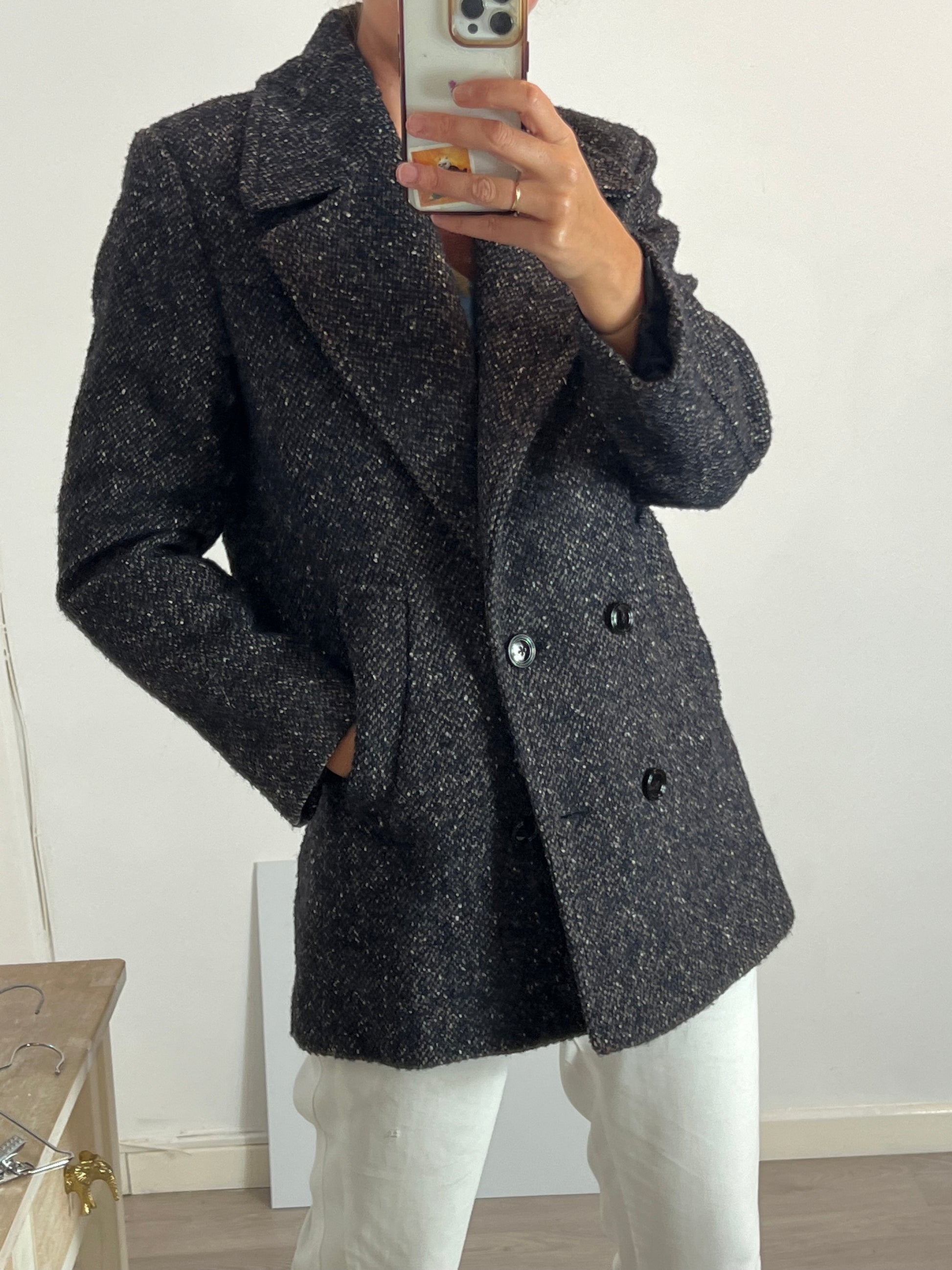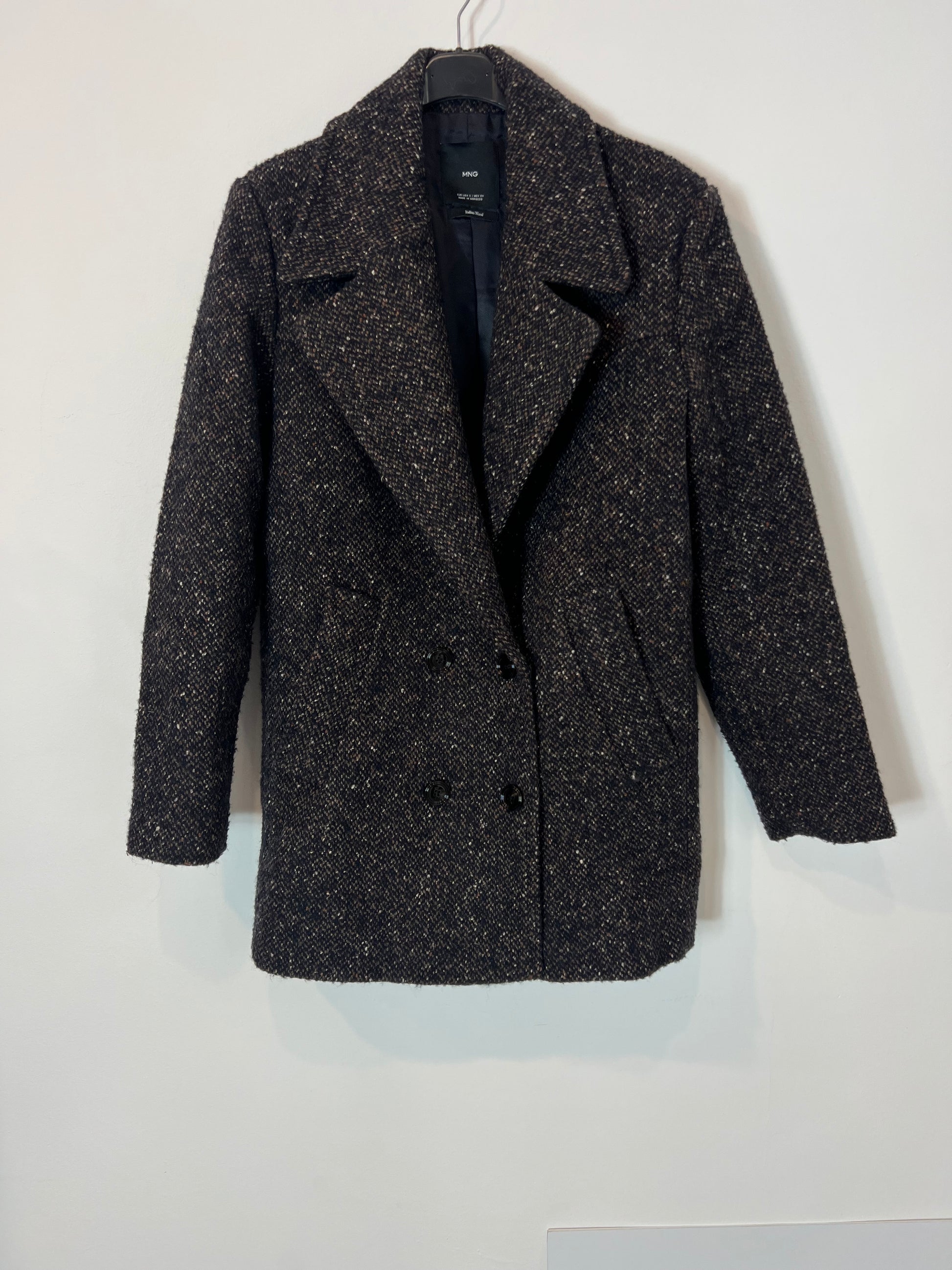MANGO. Abrigo negro cruzado jaspeado. T S