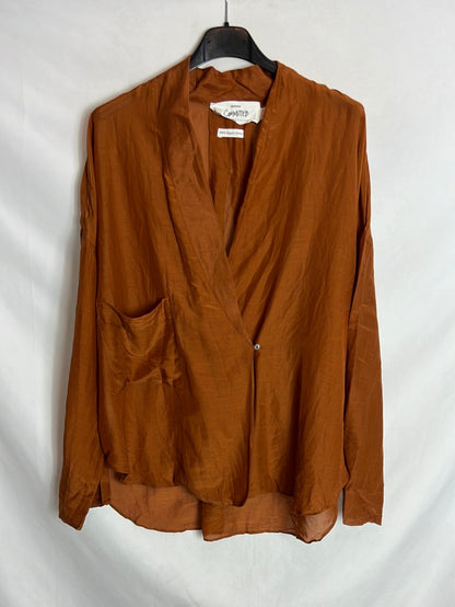 MANGO. Blusa algodón marrón estilo oversized . TS