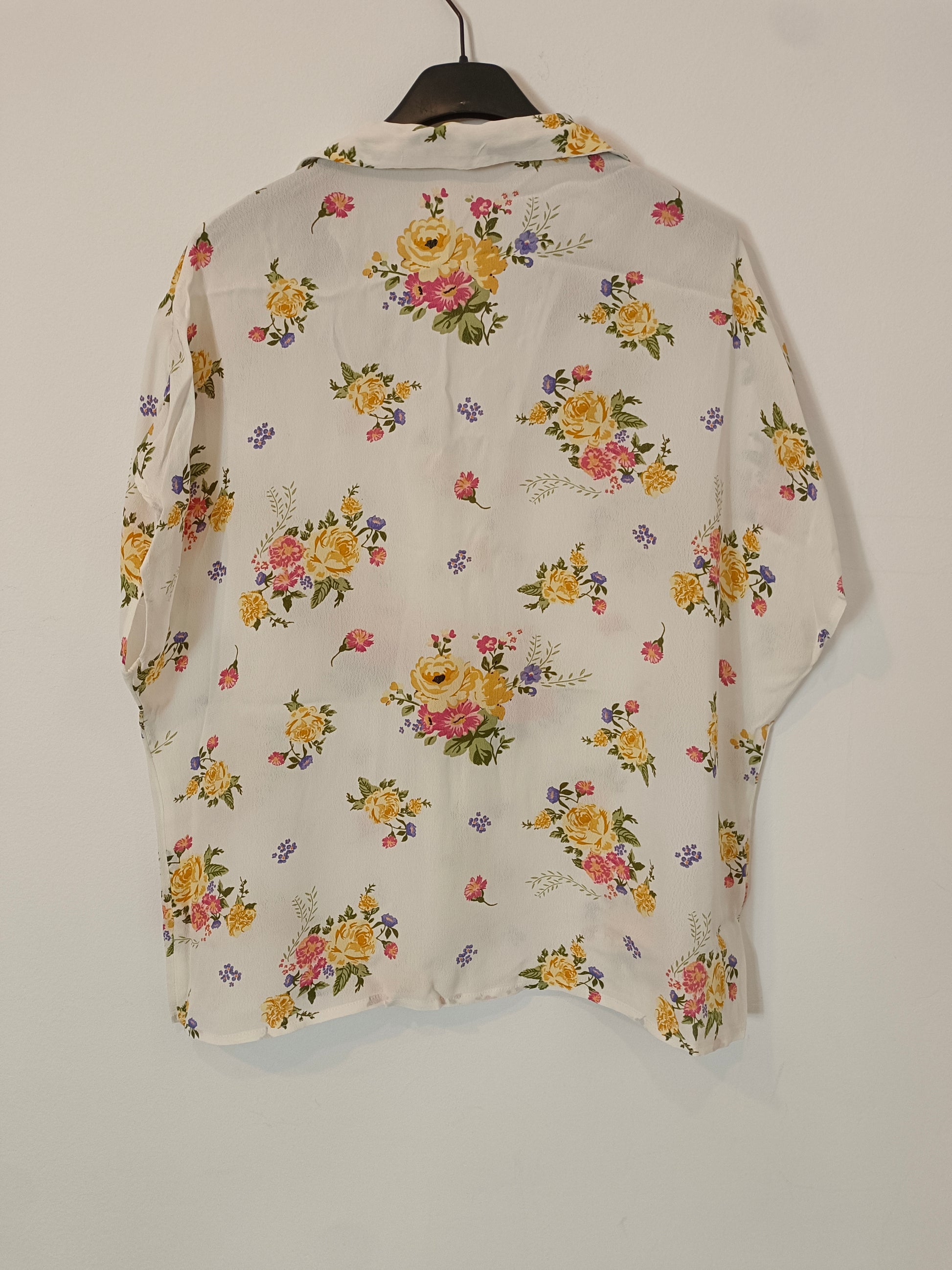 MANGO. Blusa beige flores T.s