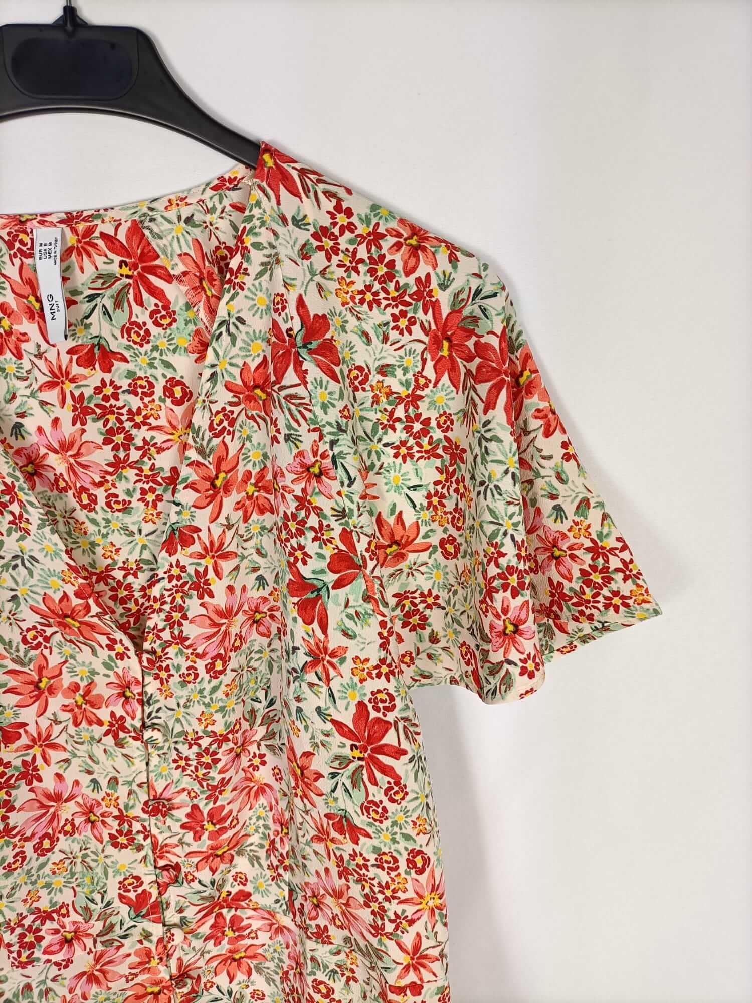 MANGO. Blusa beige flores T.m