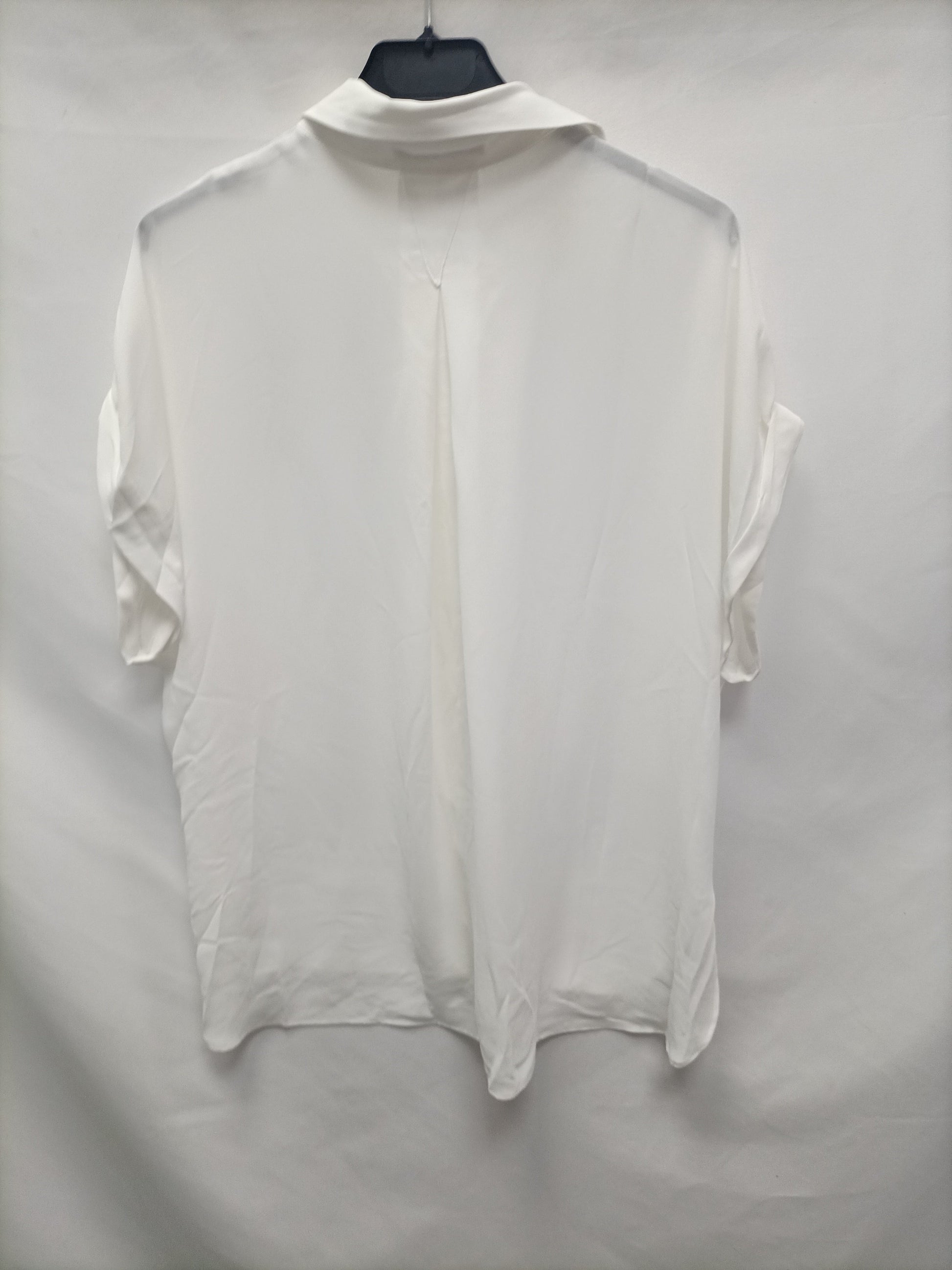 Blusa fluida blanca sin mangas abotonada y semitransparente. No elástica. De sisa a sisa 61 cm Largo 70 cm