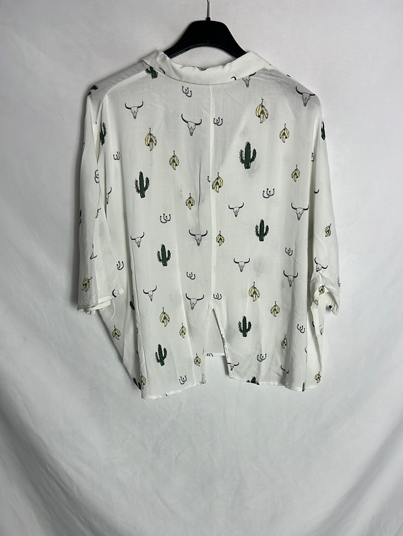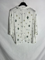 MANGO. Blusa blanca manga corta dibujos. T M