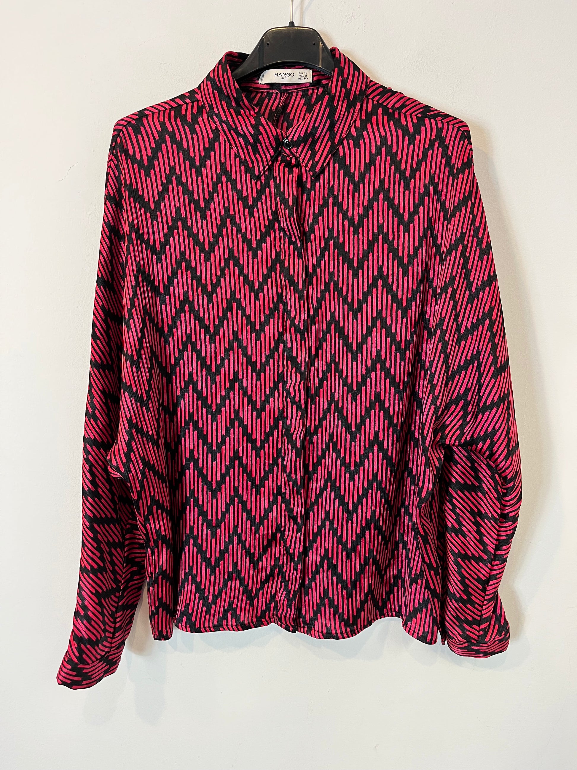 MANGO. Blusa estampado retro rosa y negro. T XS