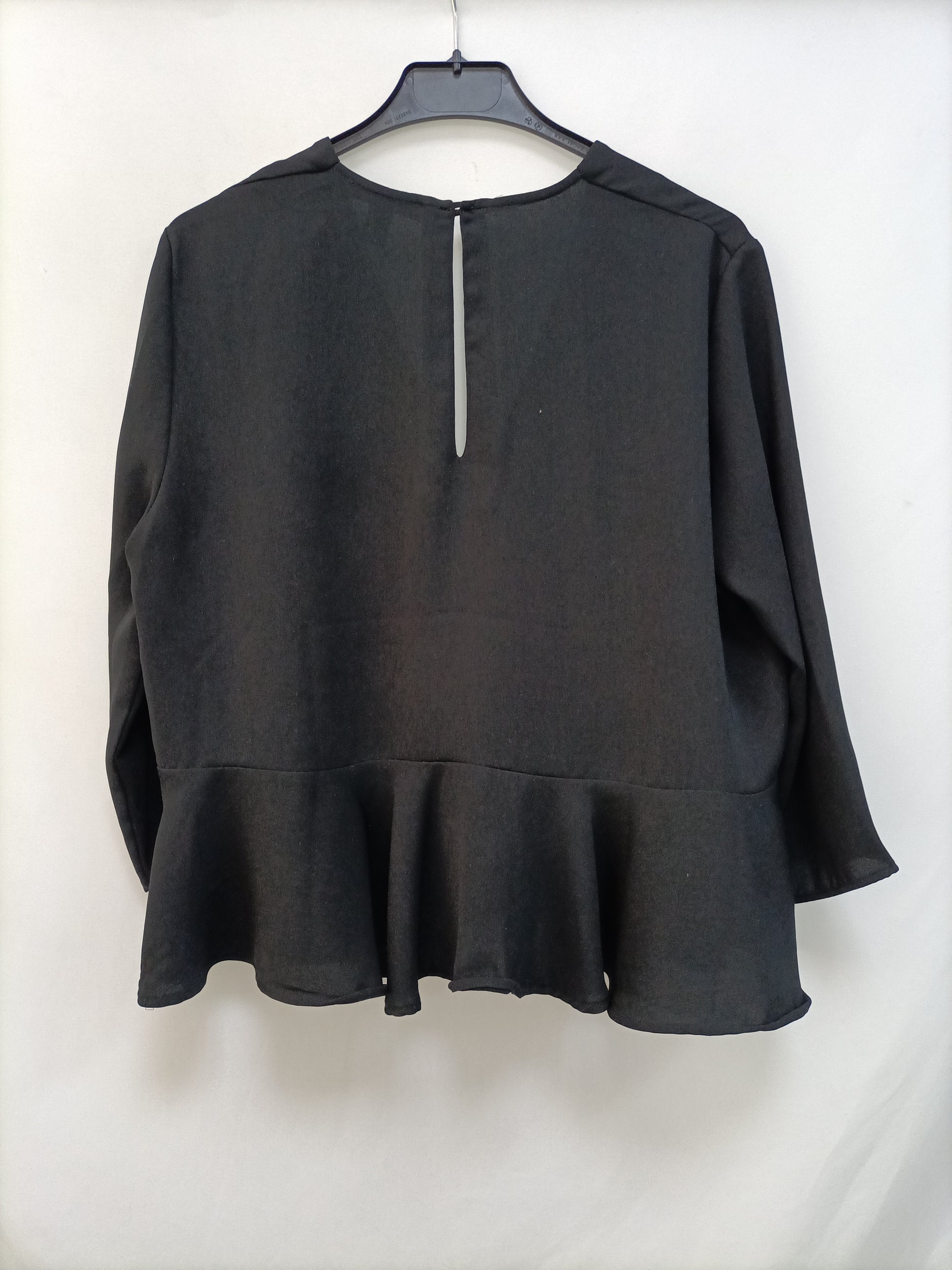 Blusa negra con volante. no elástica. de sisa a sisa cm 51 largo 54 cm .