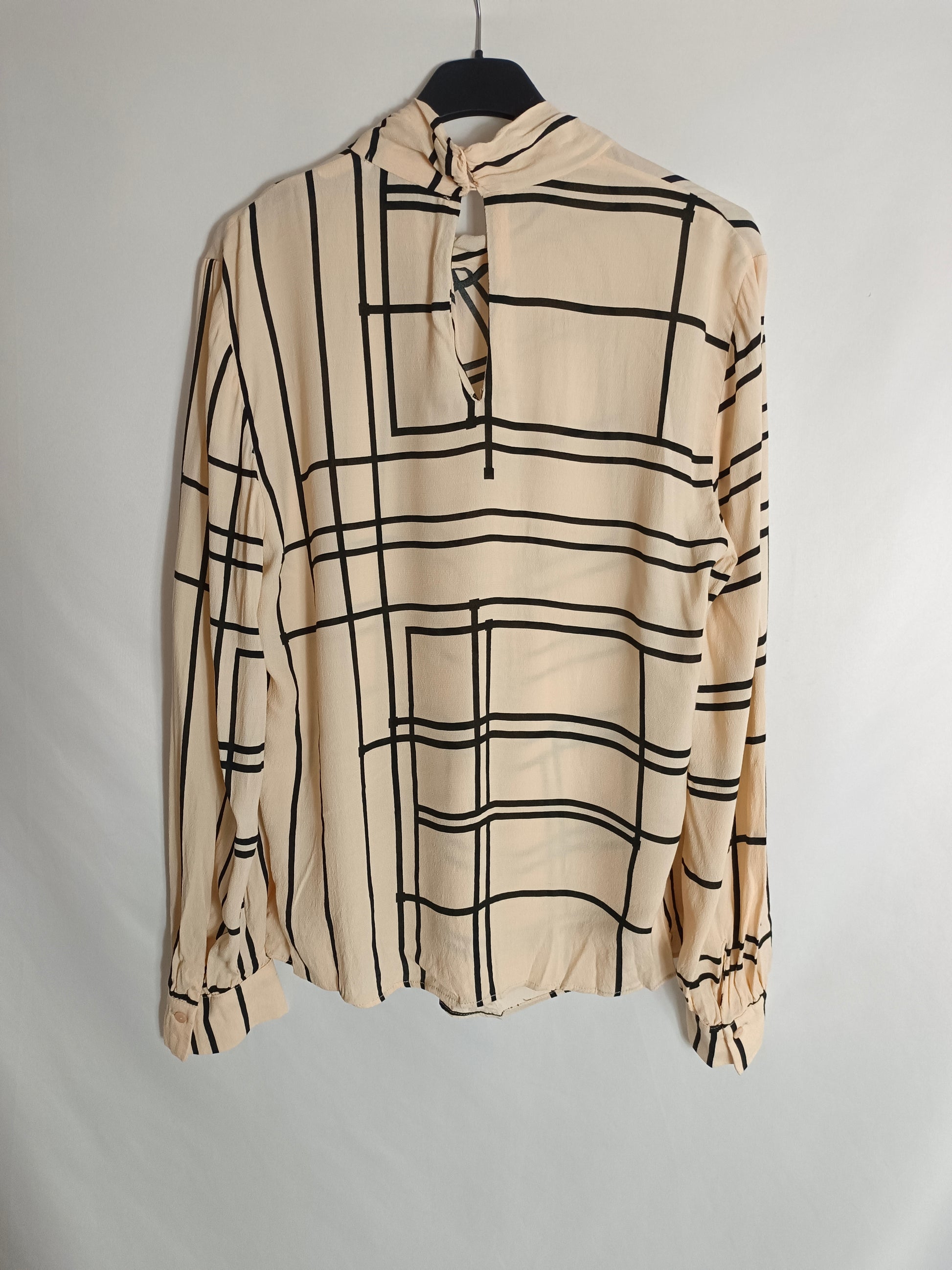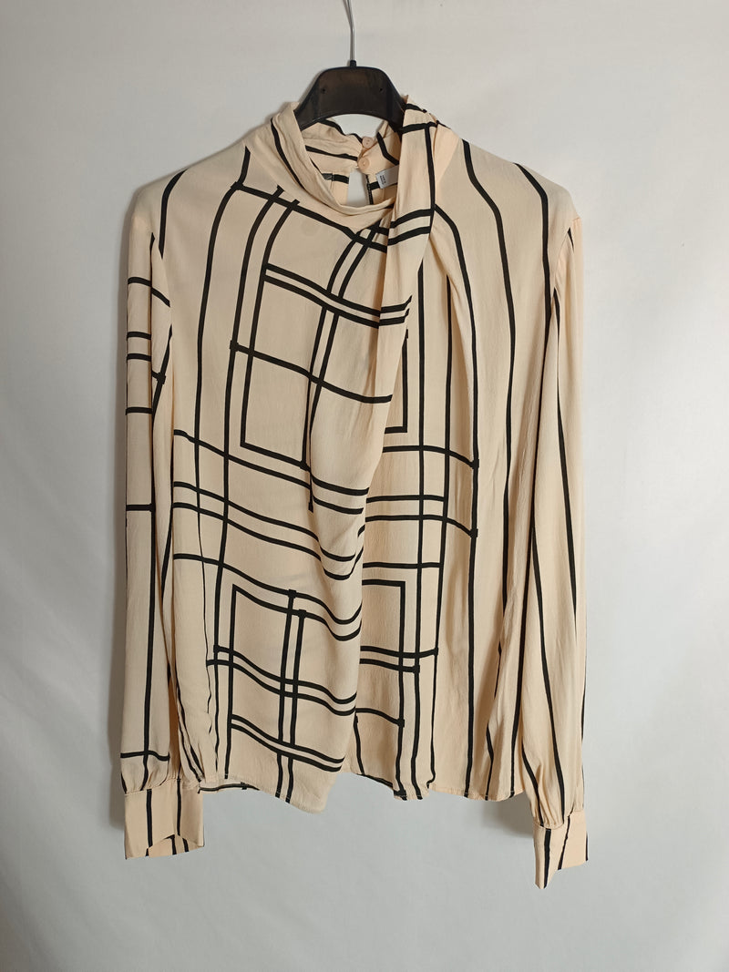MANGO. Blusa nude cuadros T.m