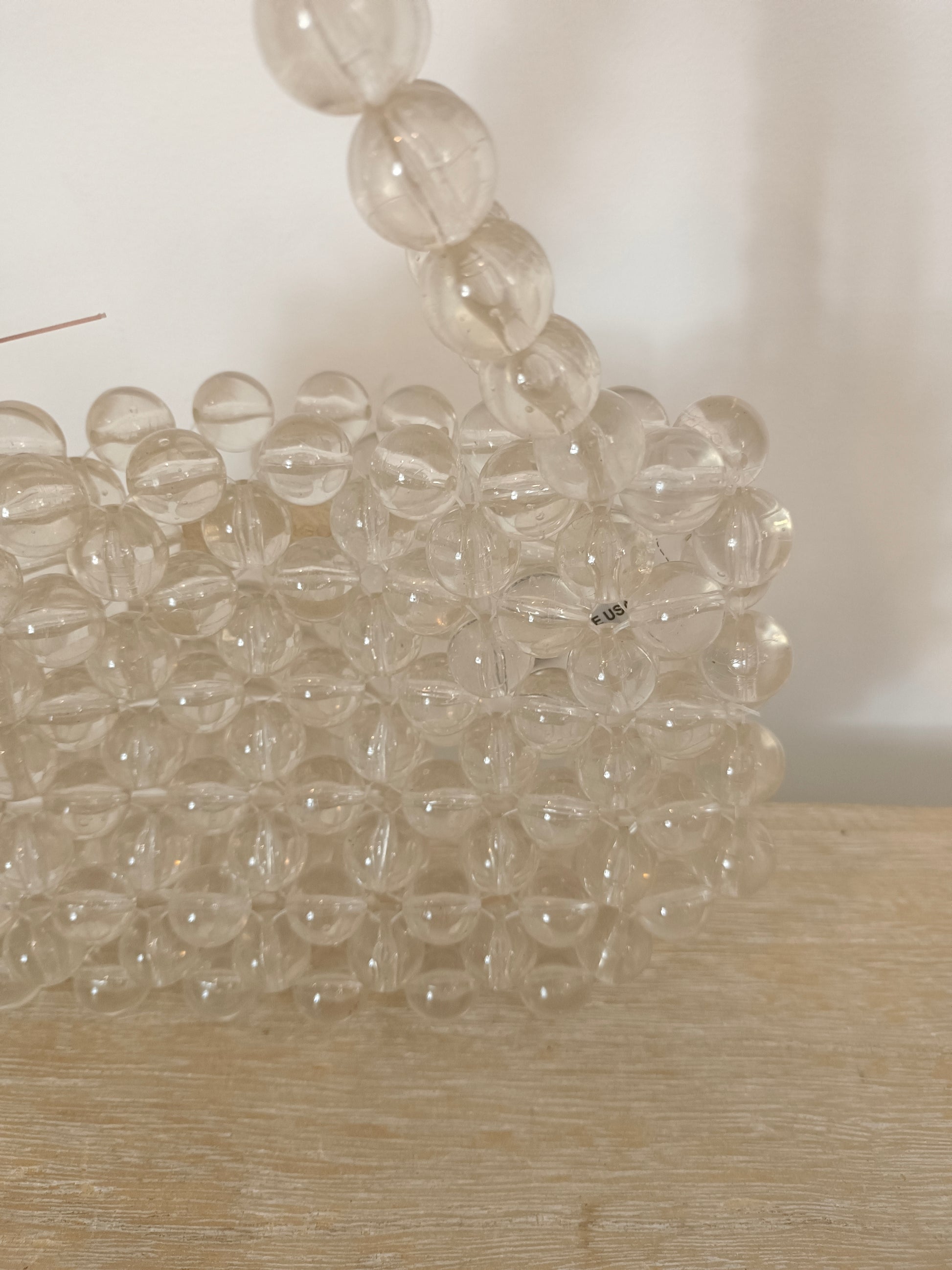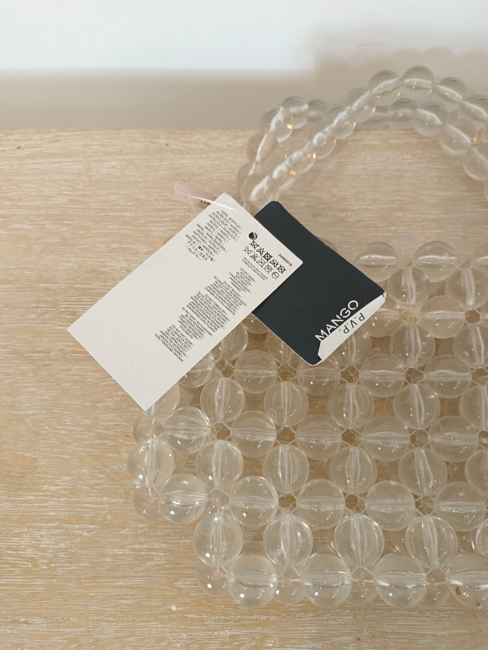 NUEVO CON ETIQUETA. Bolso asa corta de abalorios transparente.