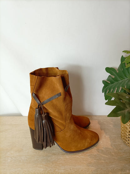 MANGO. Botines marrones flecos. T 38 ( tara)