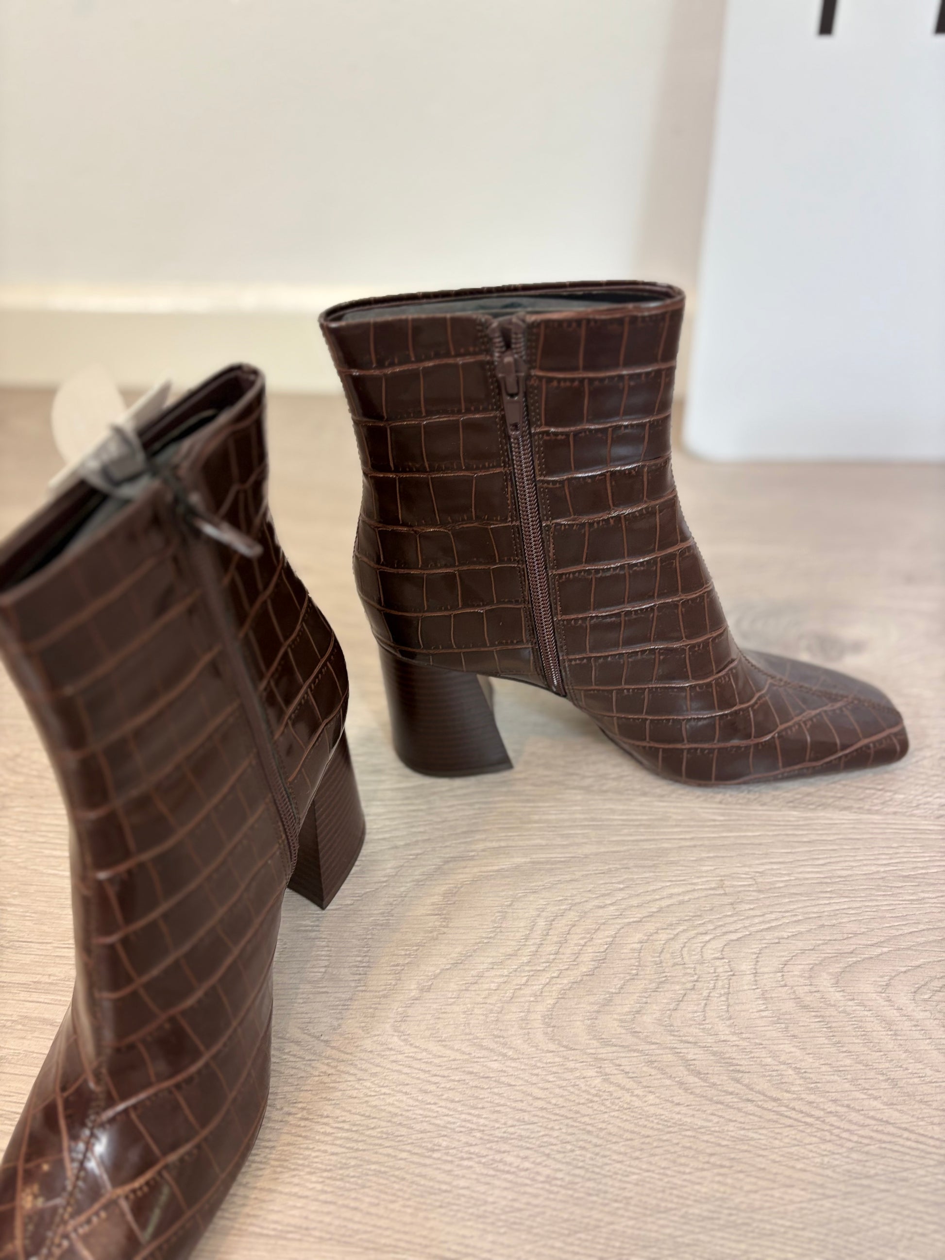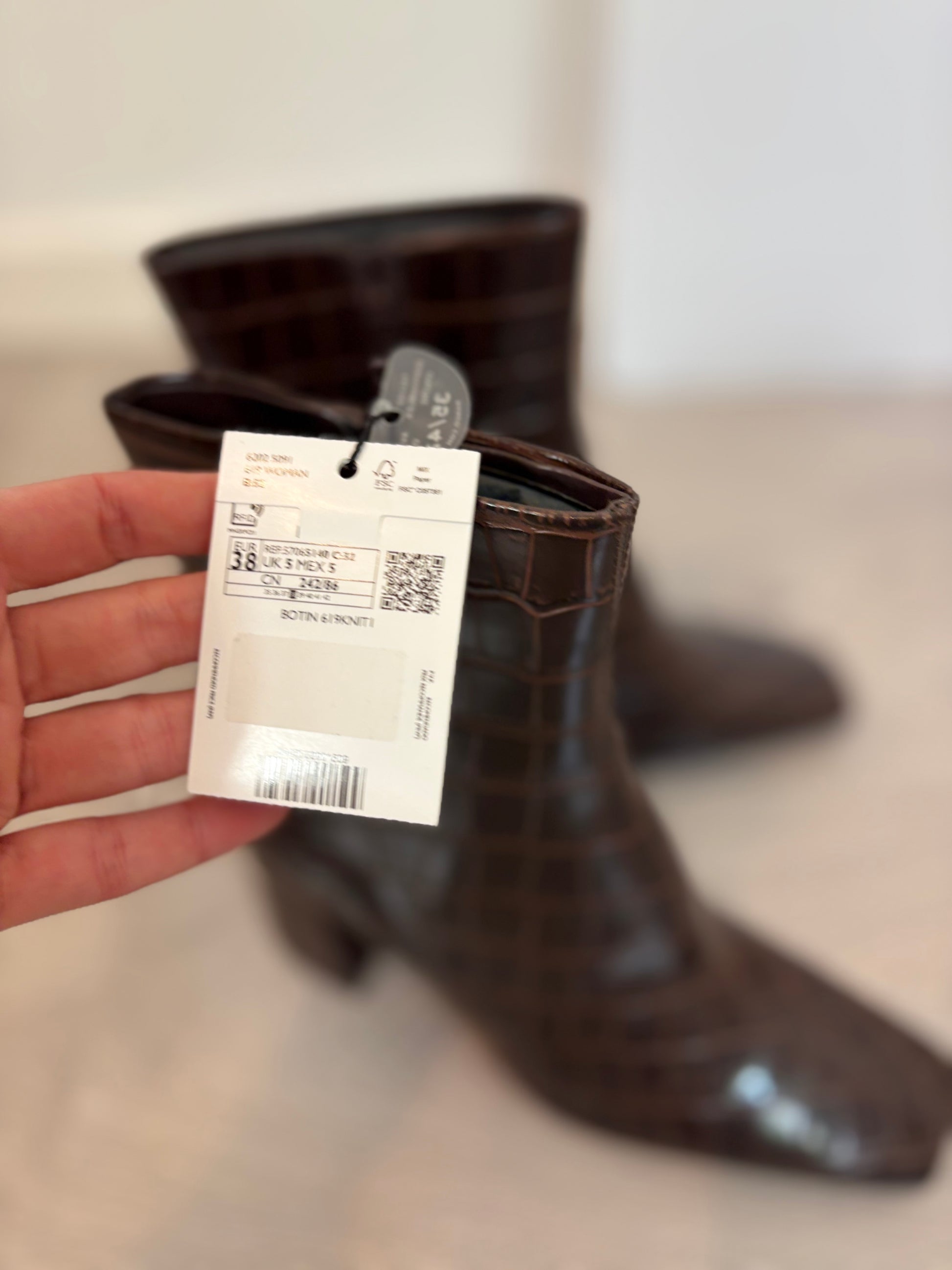 MANGO. Botines marrones textura. T 38