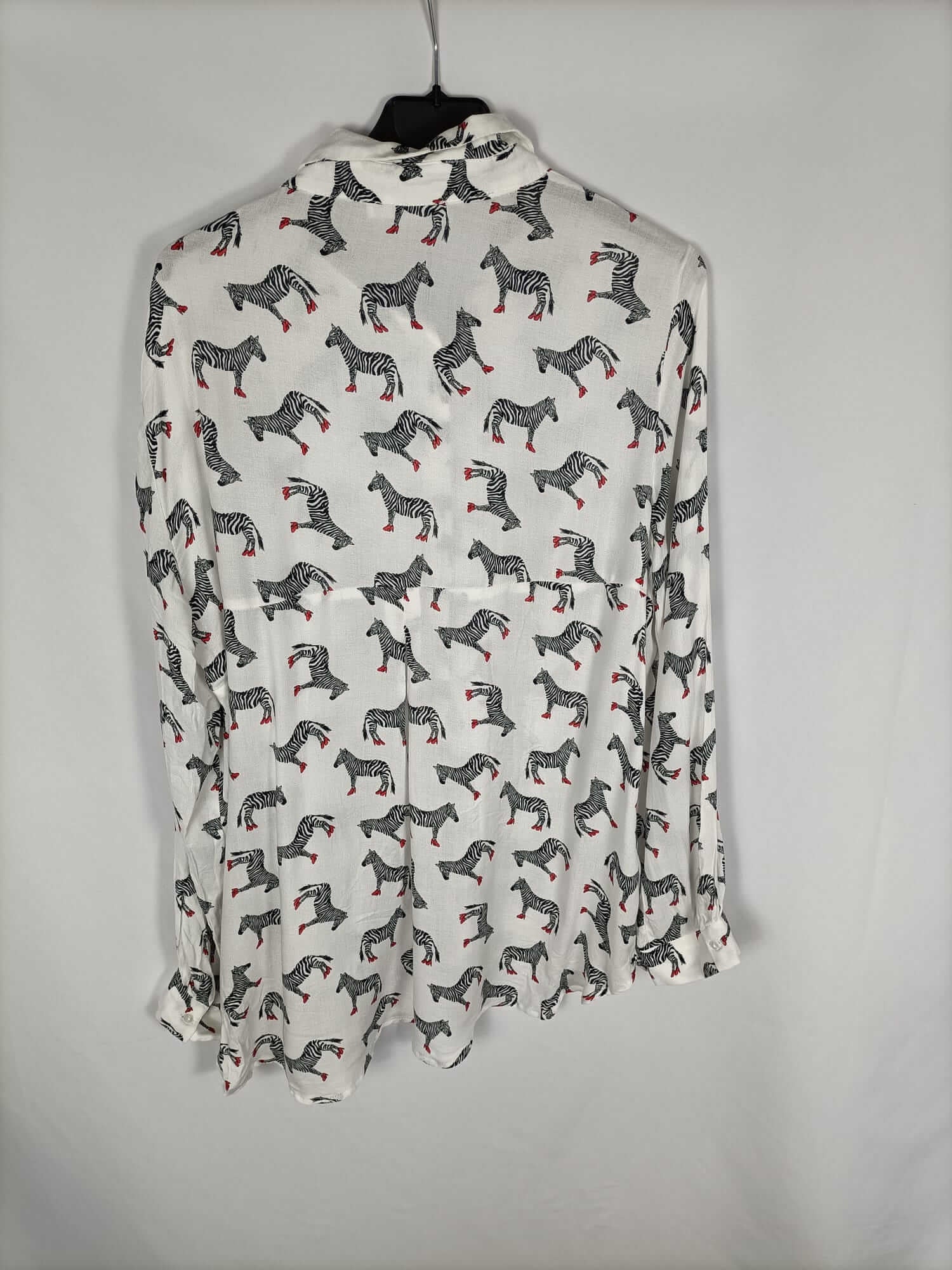 Mango. L. NUEVO CON ETIQUETA. Blusa blanca fluida con estampado de cebras. No elástica. De sisa a sisa 58 cm largo 57 cm