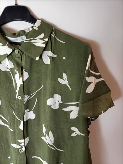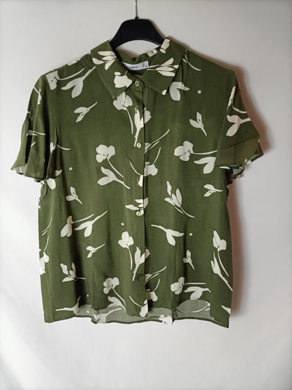 MANGO. Camisa manga corta verde flores. T S