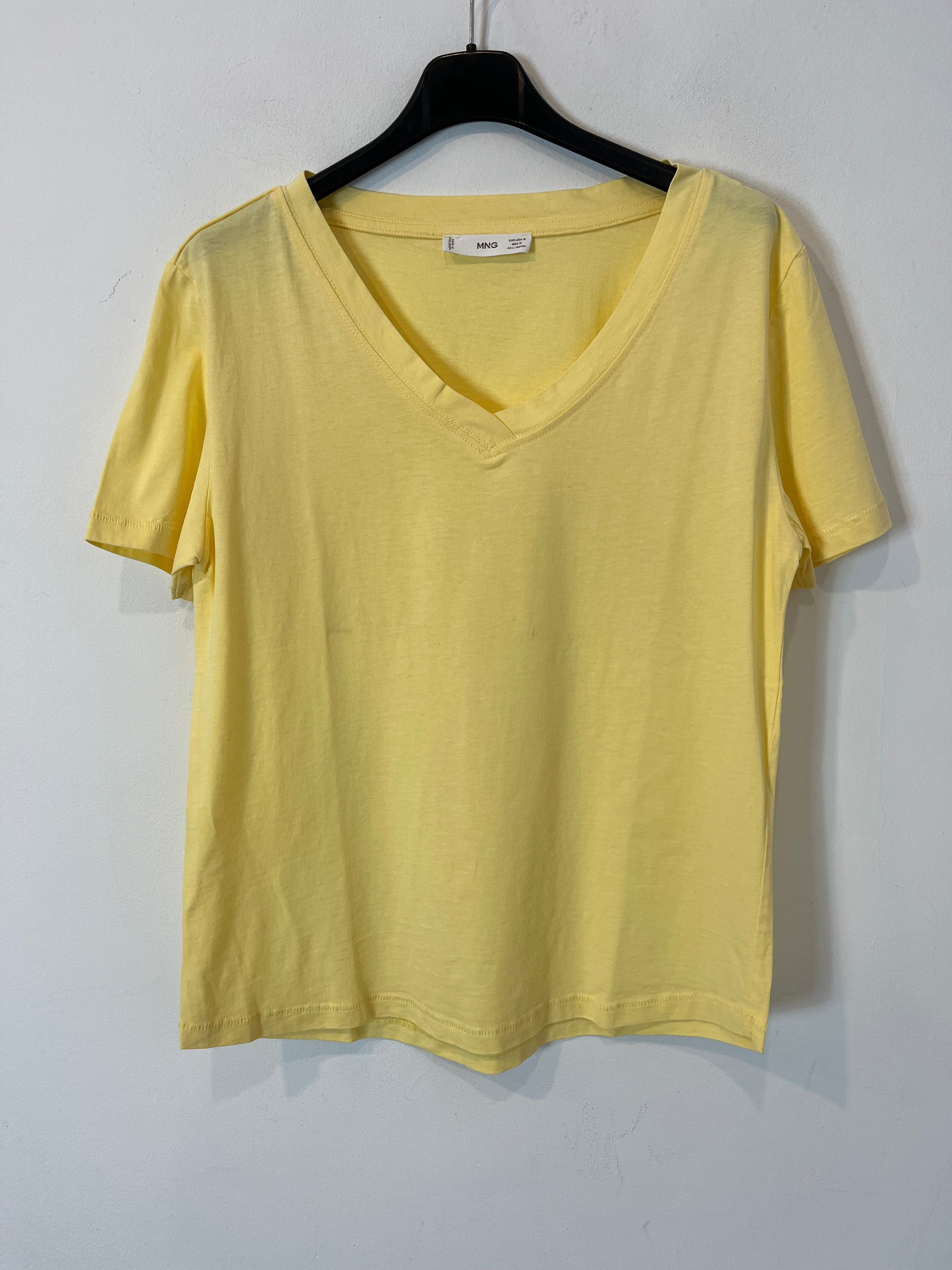 MANGO. Camiseta amarilla cuello pico. T M