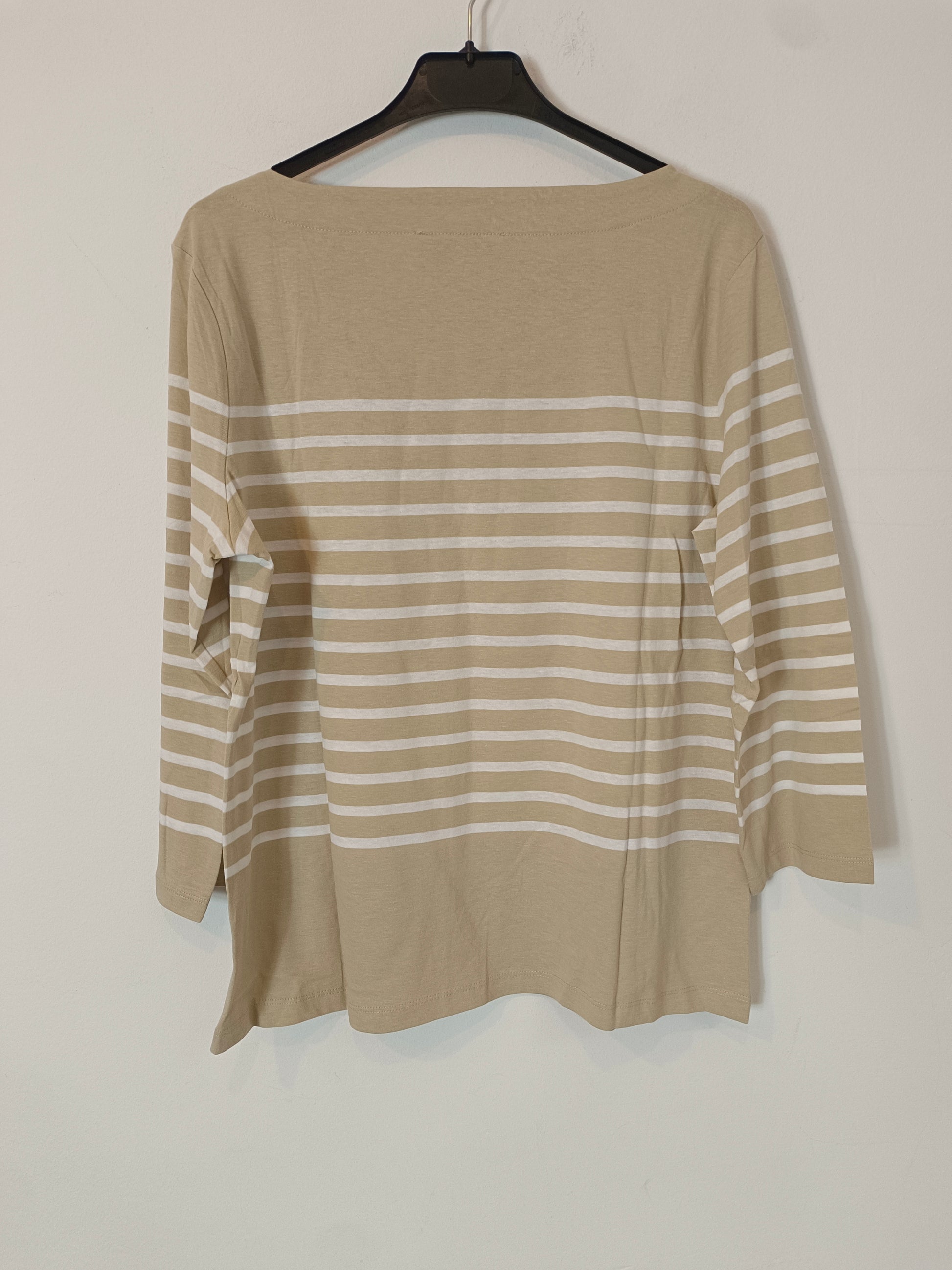 NUEVO CON ETIQUETA. camiseta manga larga de rayas beige y blanco