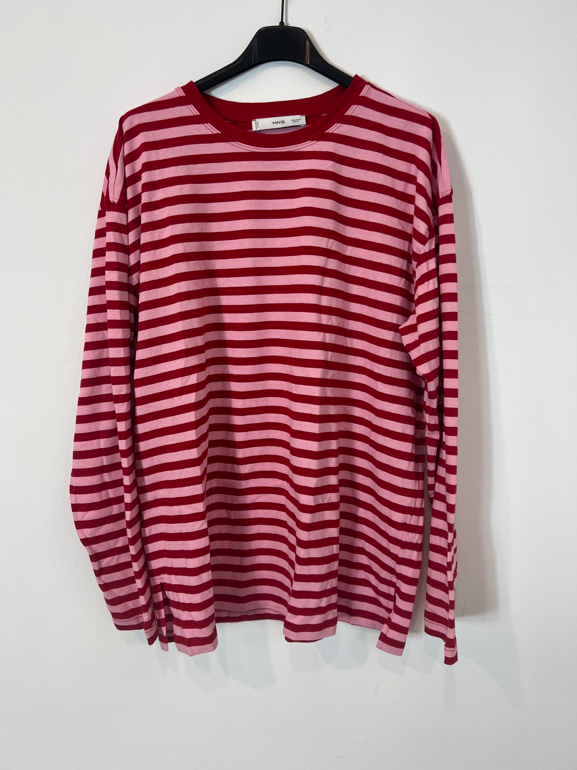 MANGO. Camiseta rayas rosa y roja T.m