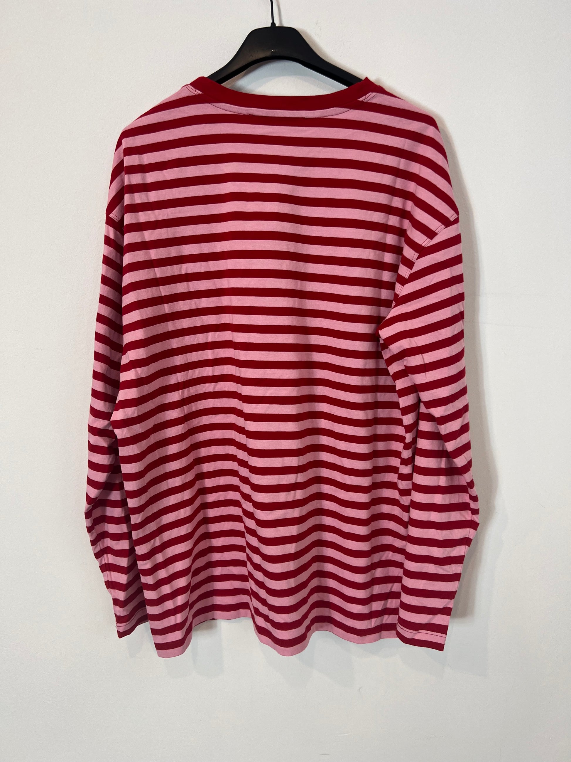 Camiseta rayas rosa y roja ligeramente oversized