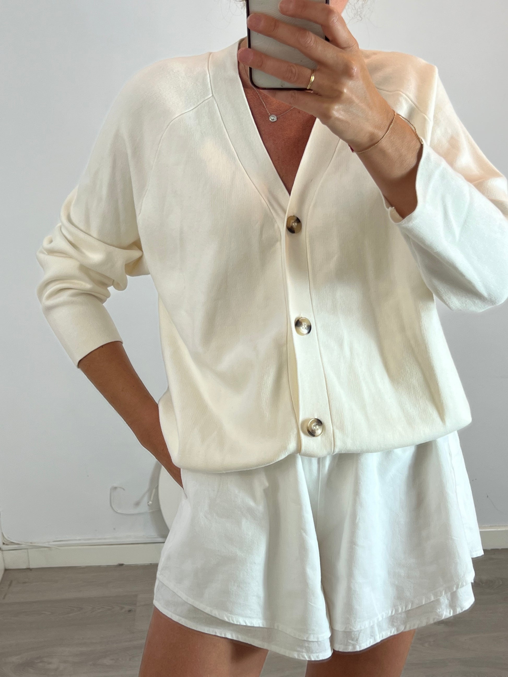 Cárdigan color crudo detalle botones estilo oversized