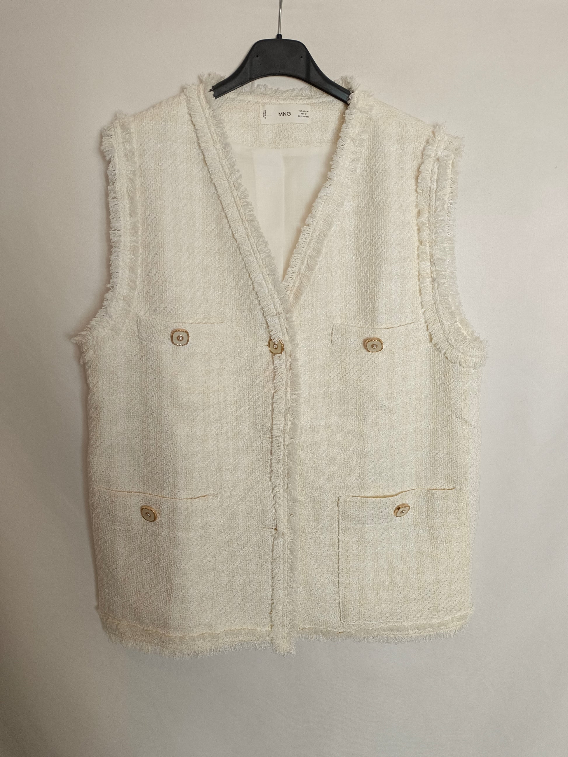 MANGO. Chaleco beige tweed T.m