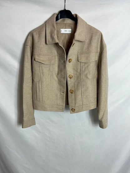 MANGO. Chaqueta beige jaspeada lana. T XXS (S)