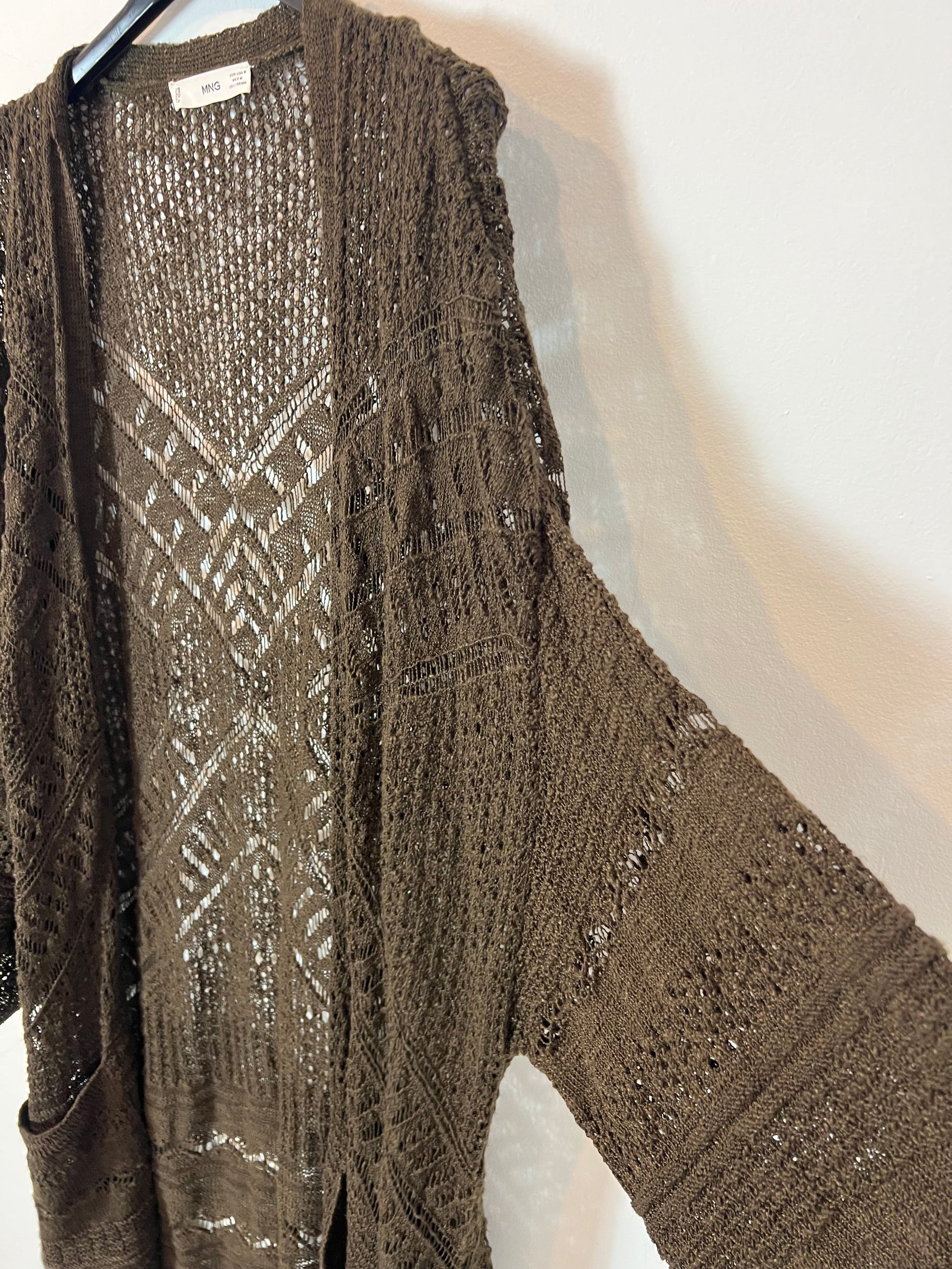 MANGO. Chaqueta punto verde larga. T. M