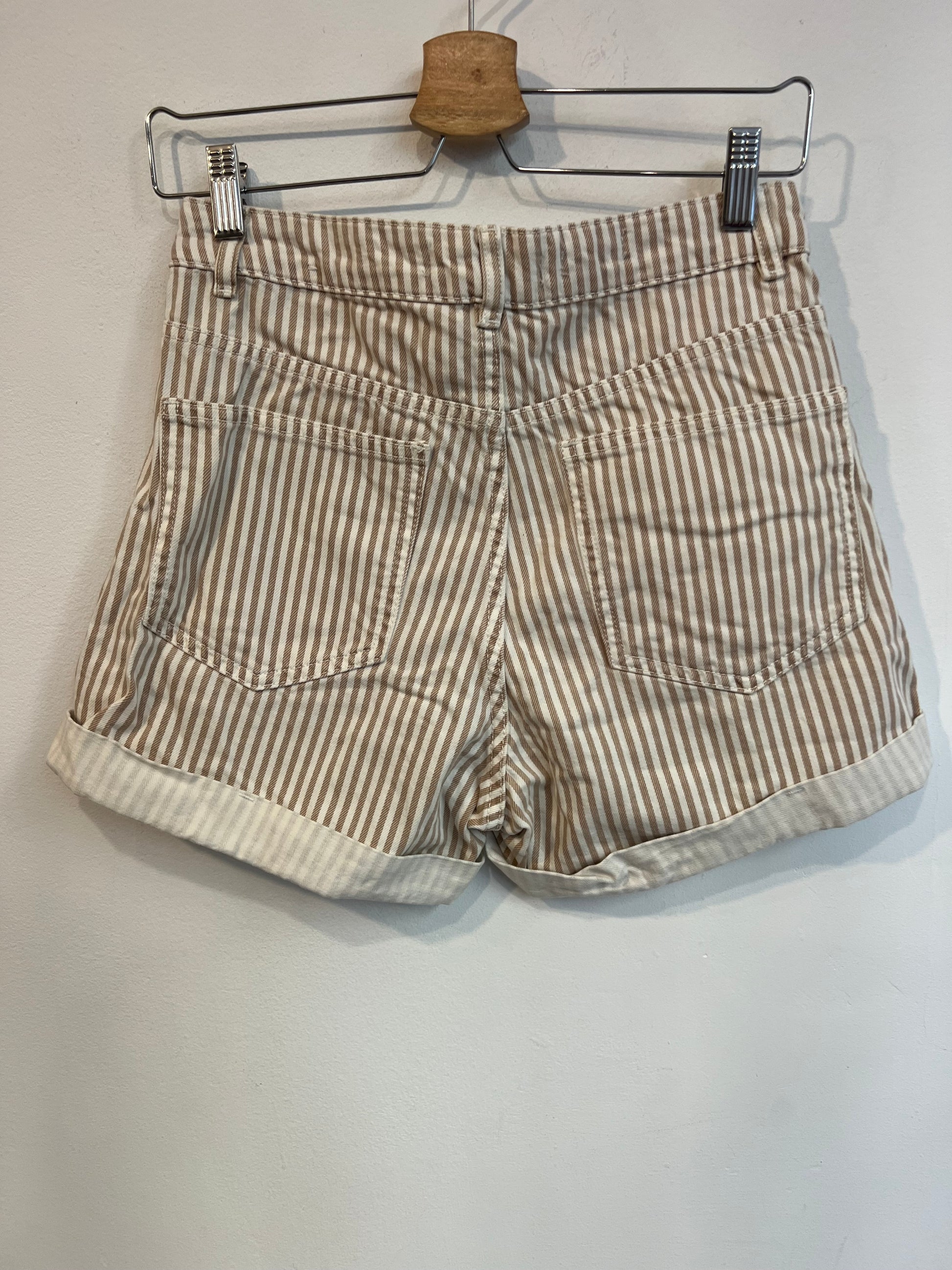 Denim corto rayas beiges. Cintura36 cm largo 38 cm . No elastico
