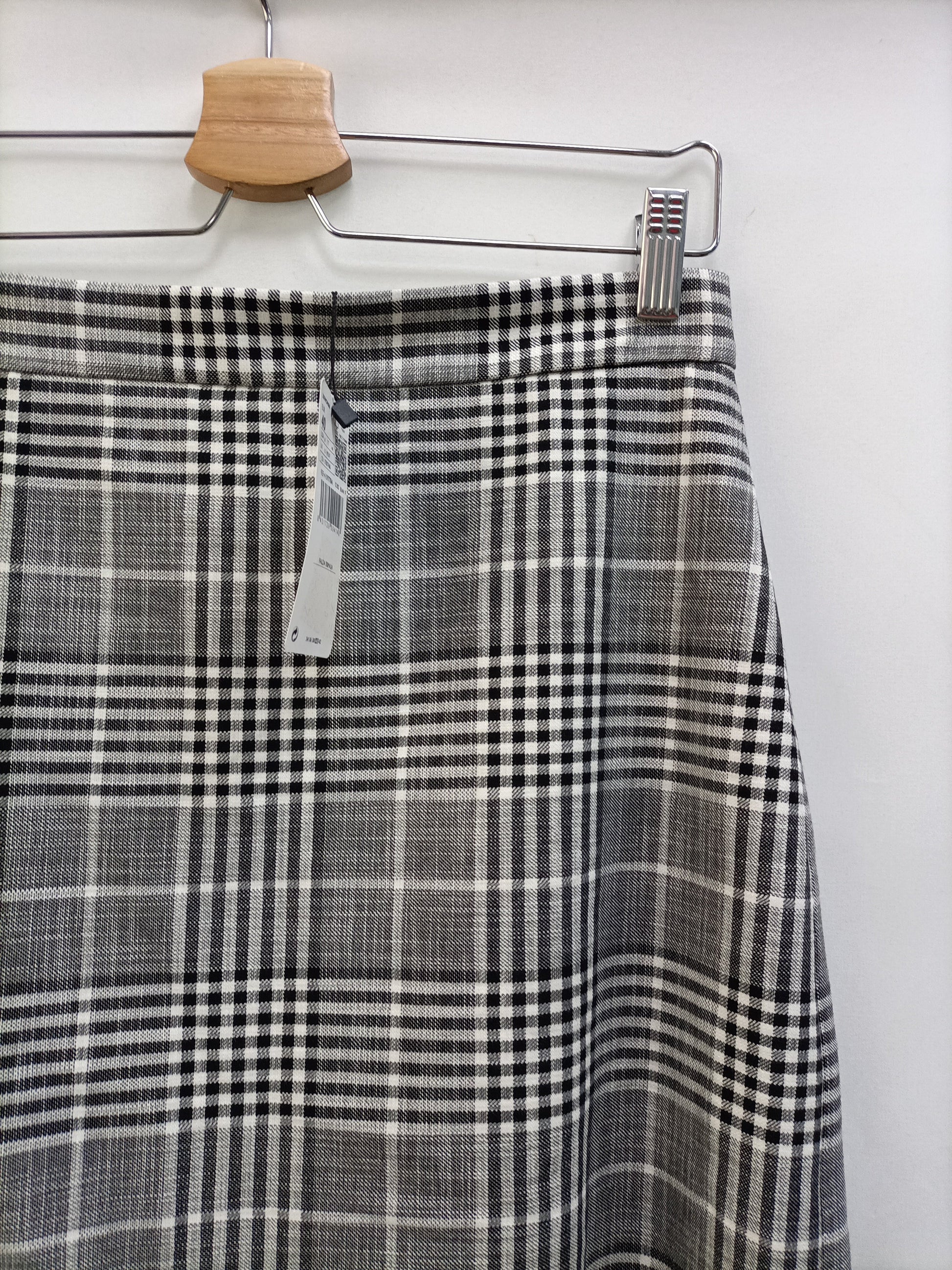 NUEVA CON ETIQUETA. Falda corta de cuadros blanca y negra. Cintura 38 cm largo 46 cm