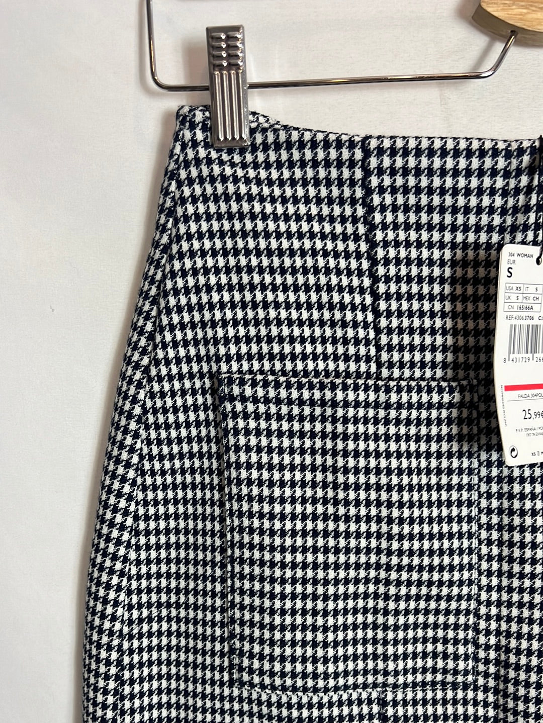 NUEVO CON ETUQUETA. Falda negra y blanca de pata de gallo , largo 44cm