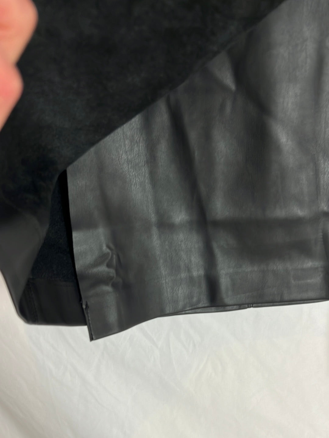falda corta cruzada negra efecto piel . Cibtura 33cm, largo 42cm