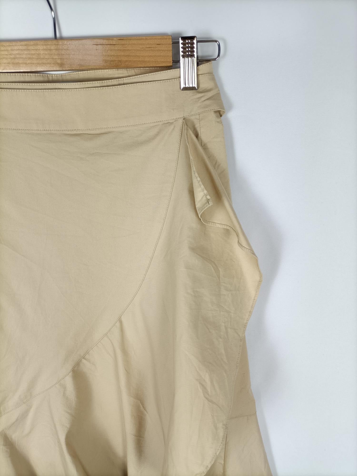 Mango. M .falda midi beige cruzada estilo pareo con volante. No elástica pero ajustable. Largo 81 cm