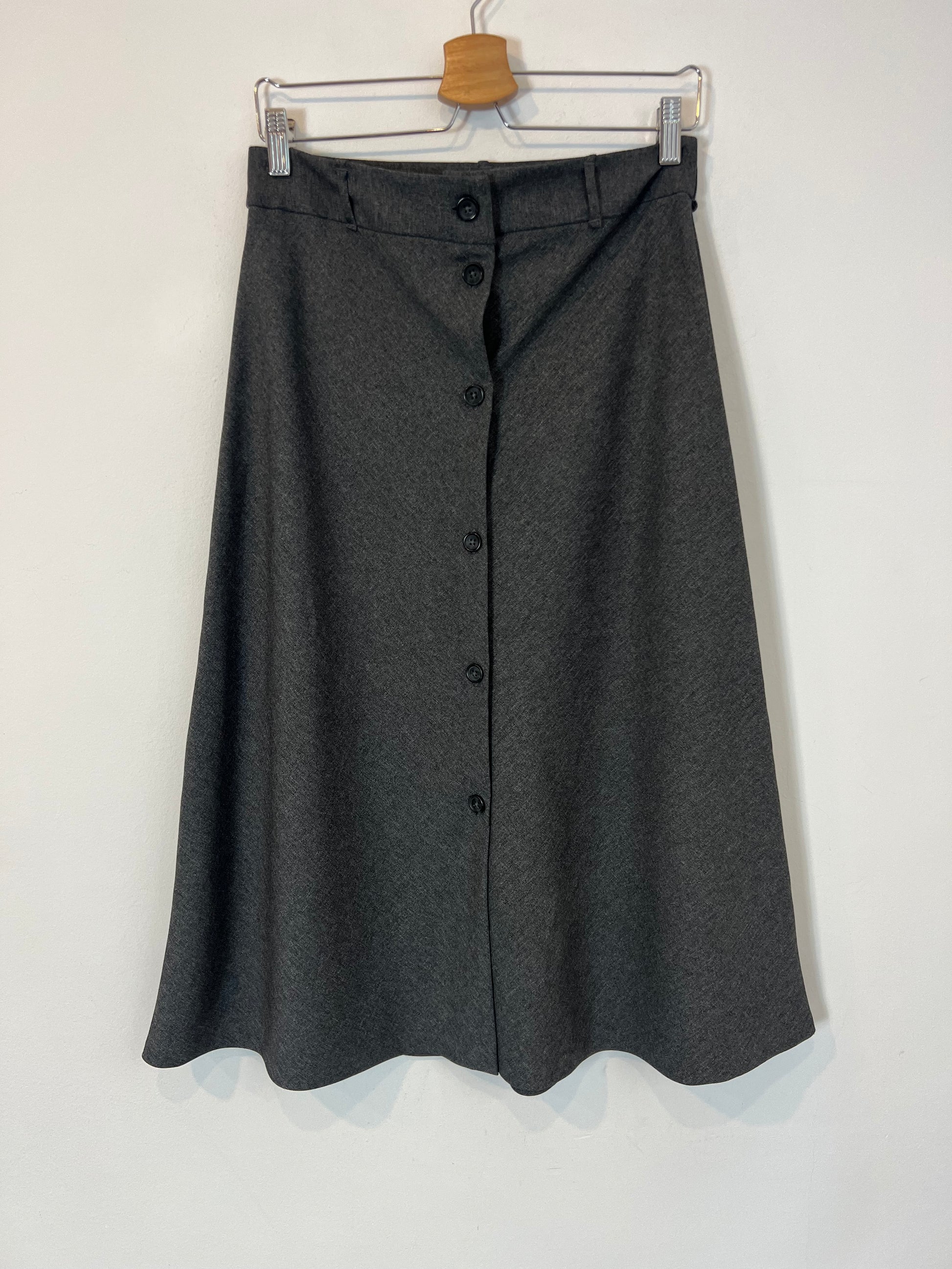 falda midi gris abotonada. Fluida y no elástica. cintura 38 cm largo 81 cm