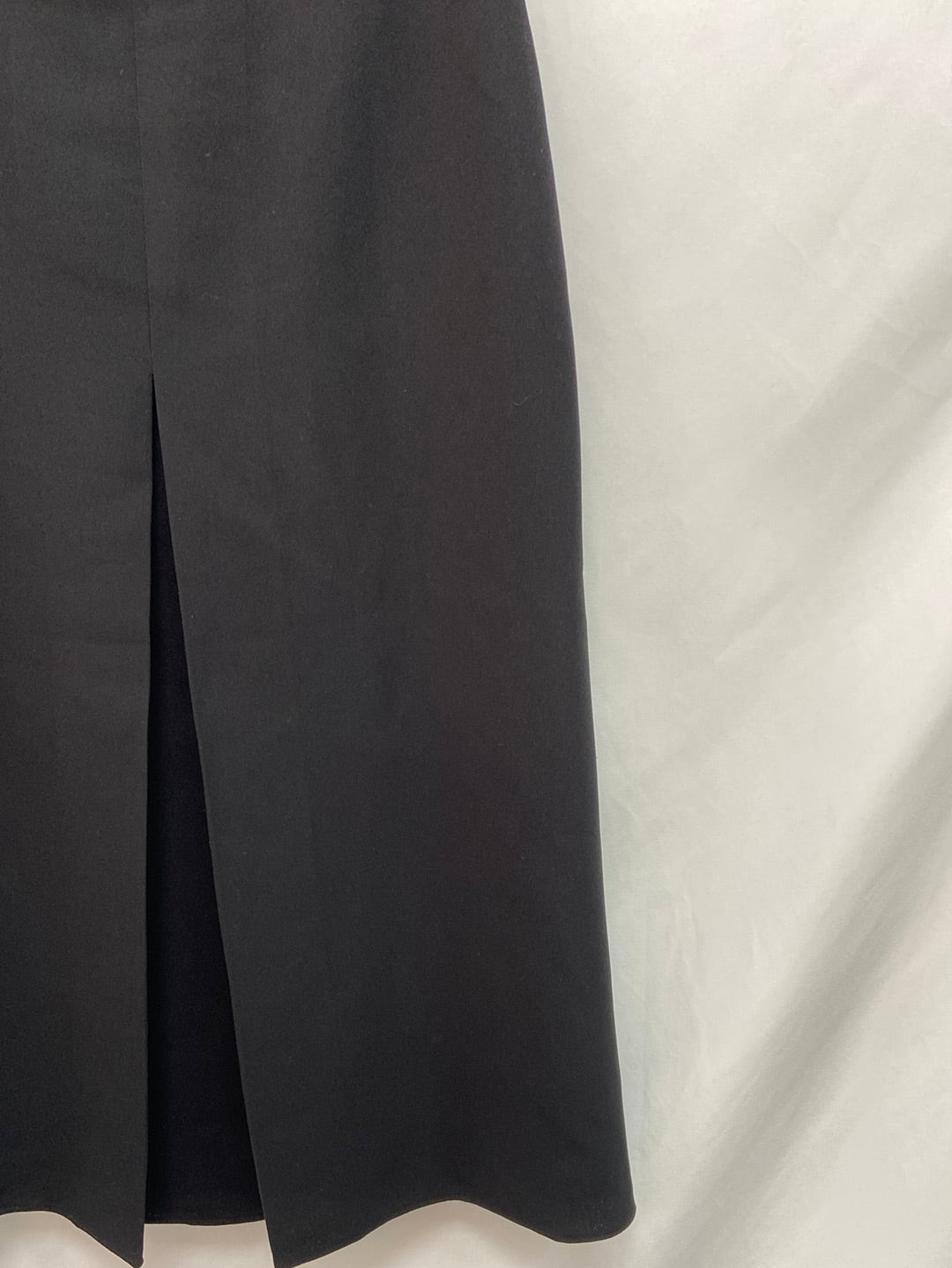 Falda negra básica de vestir con pliegue delantero. No es elástica, se abrocha con cremallera trasera. Cintura 36 cm largo 71 cm