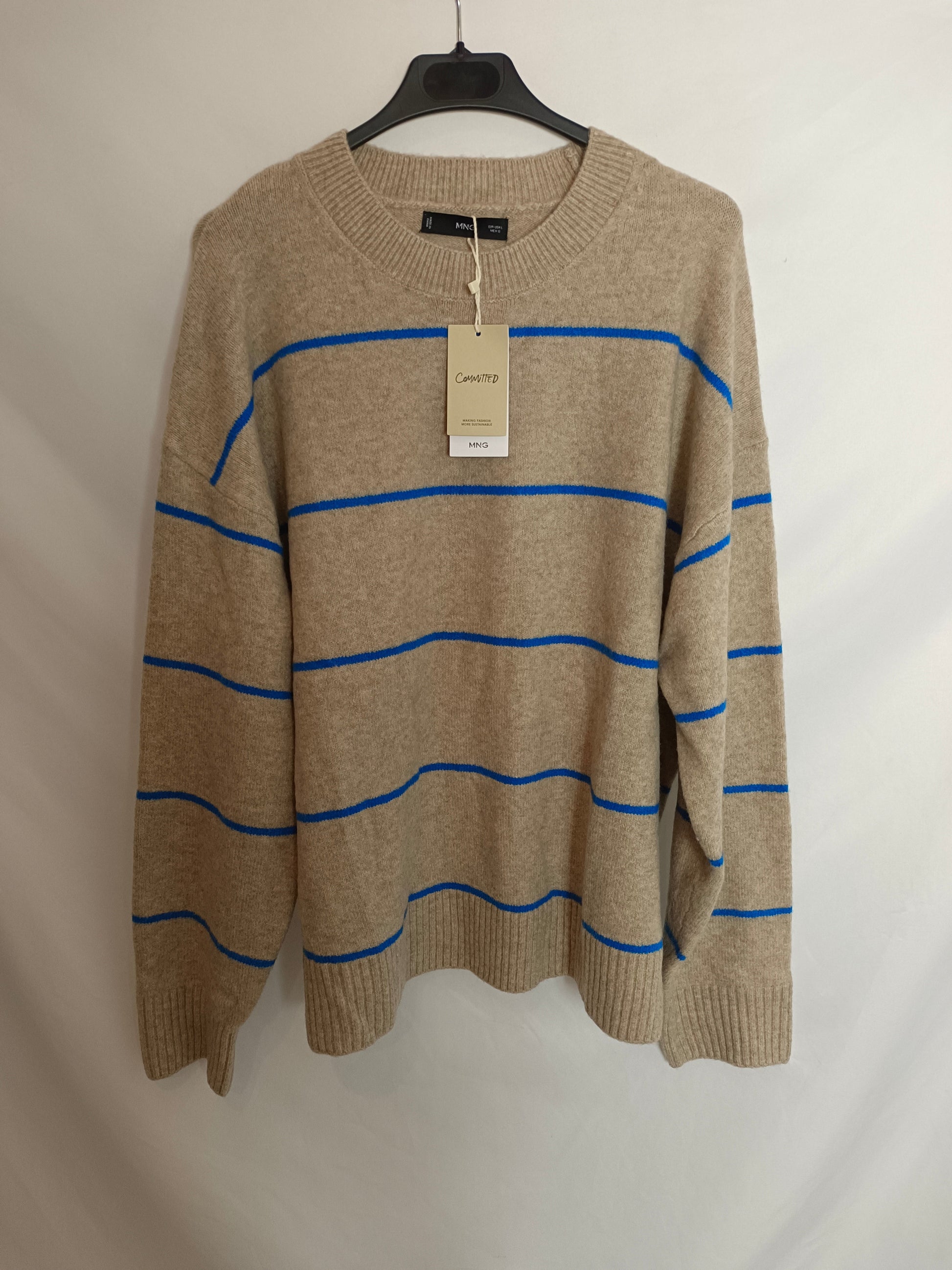 MANGO. Jersey beige rayas T.l