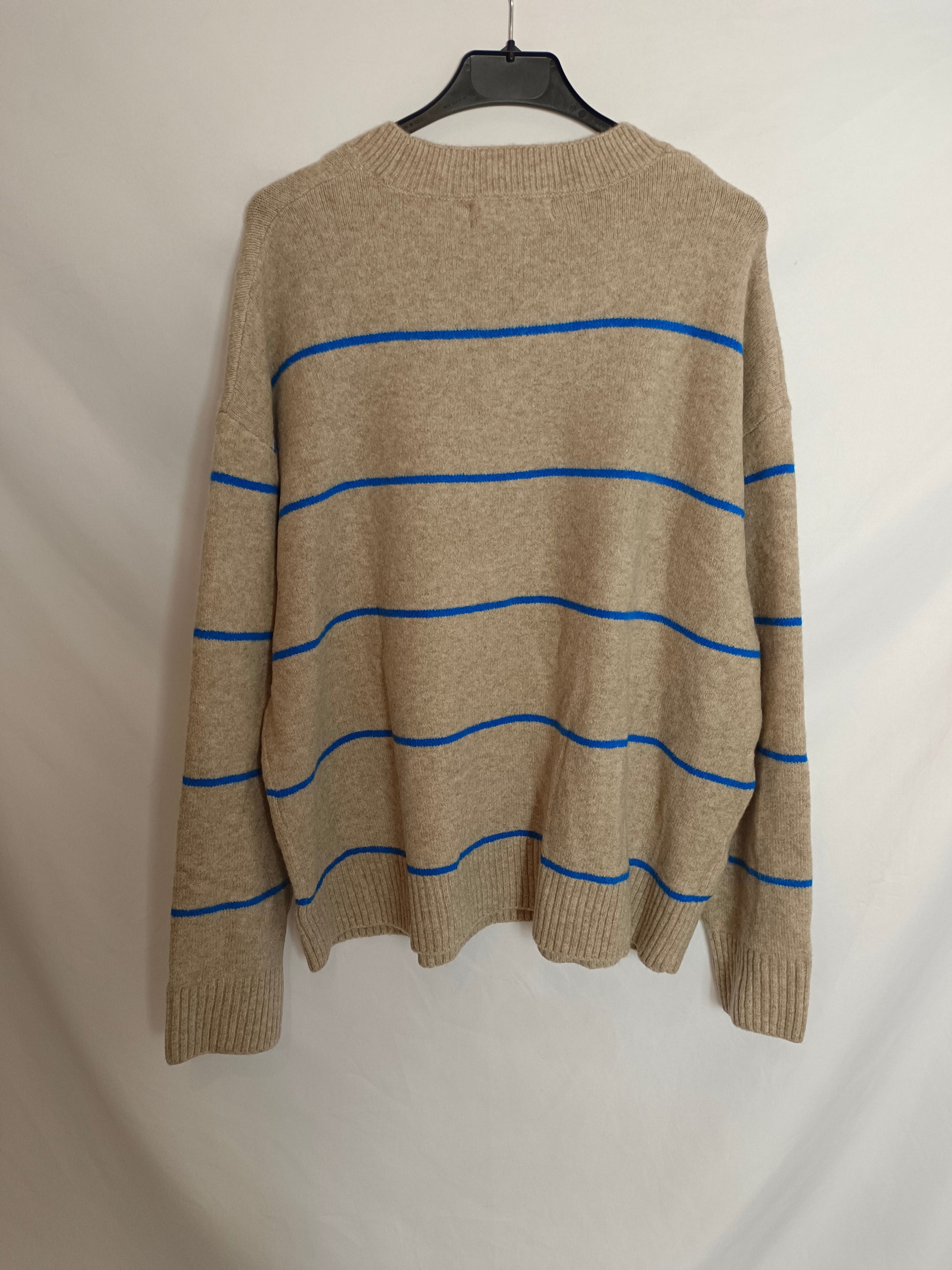 NUEVO CON ETIQUETA. jersey beige con detalle de rayas azules