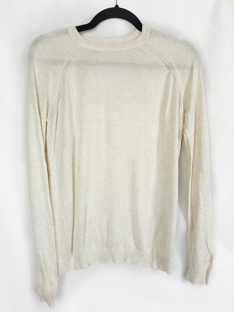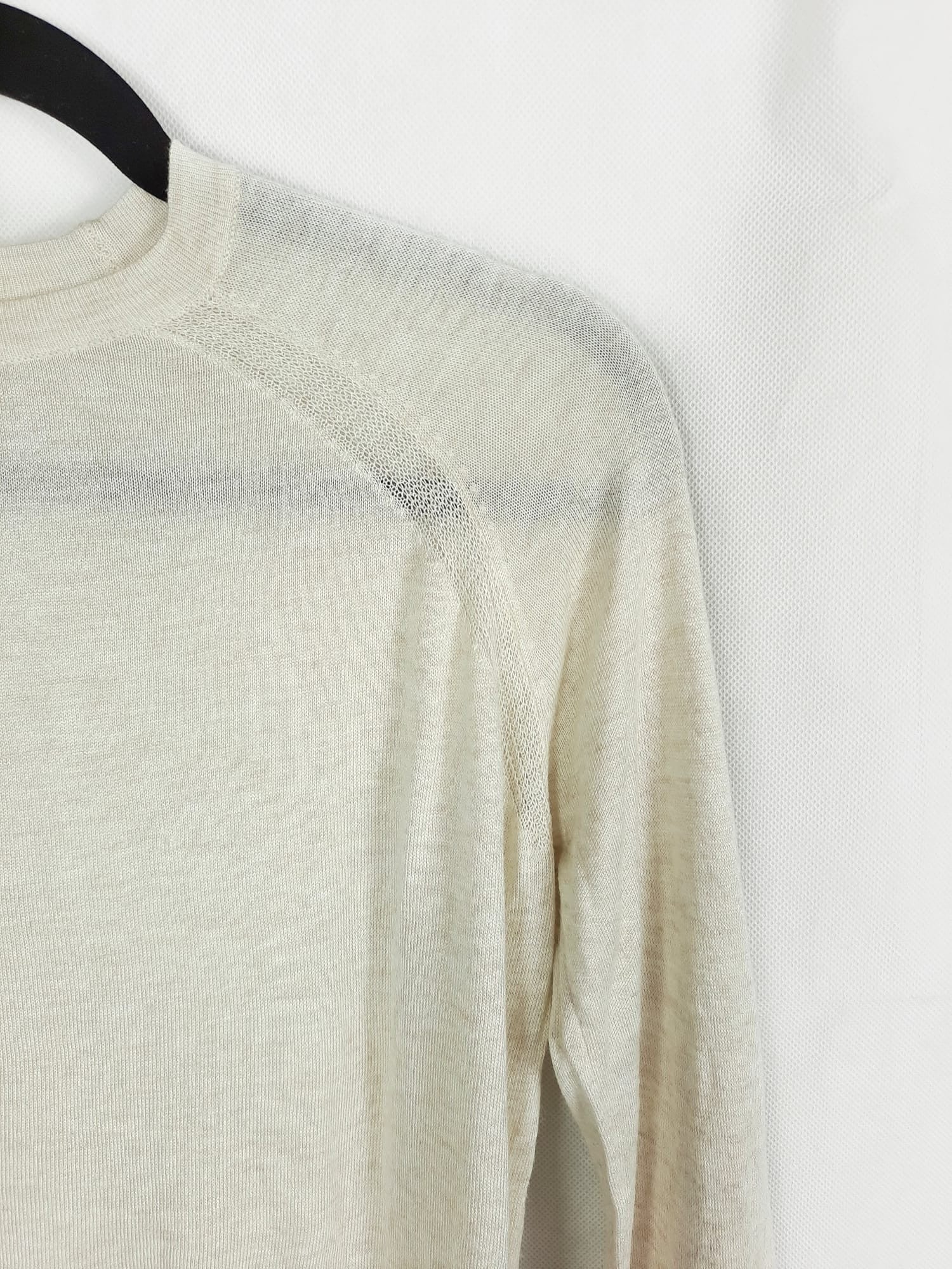 Jersey beige jaspeado muy finito, es elástico y fluido. Largo 62 cm