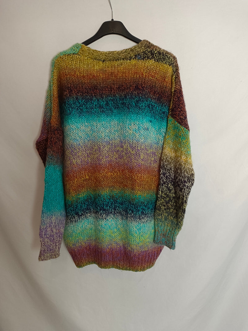jersey estilo cárdigan oversized abotonado de hilos de colores.