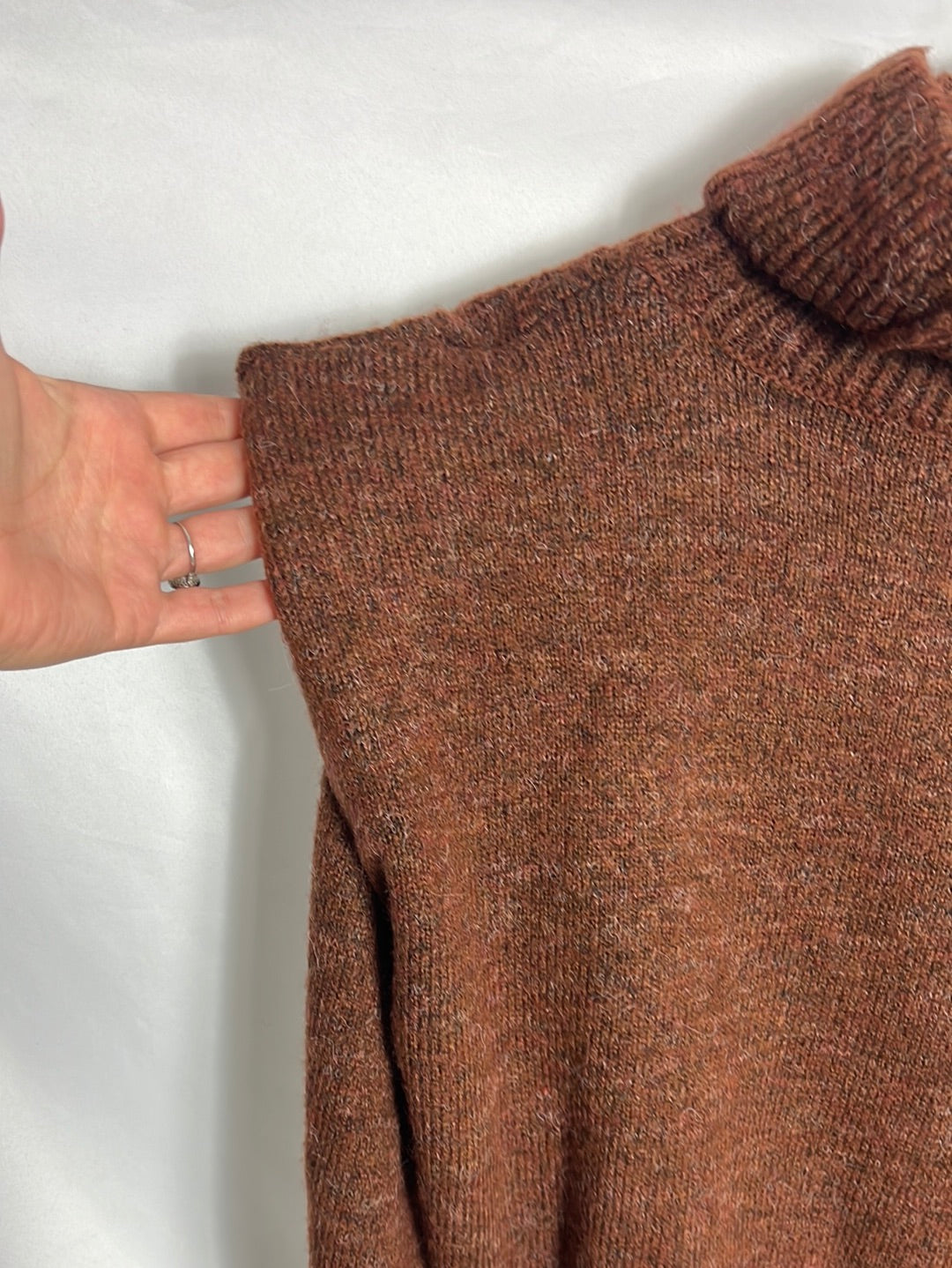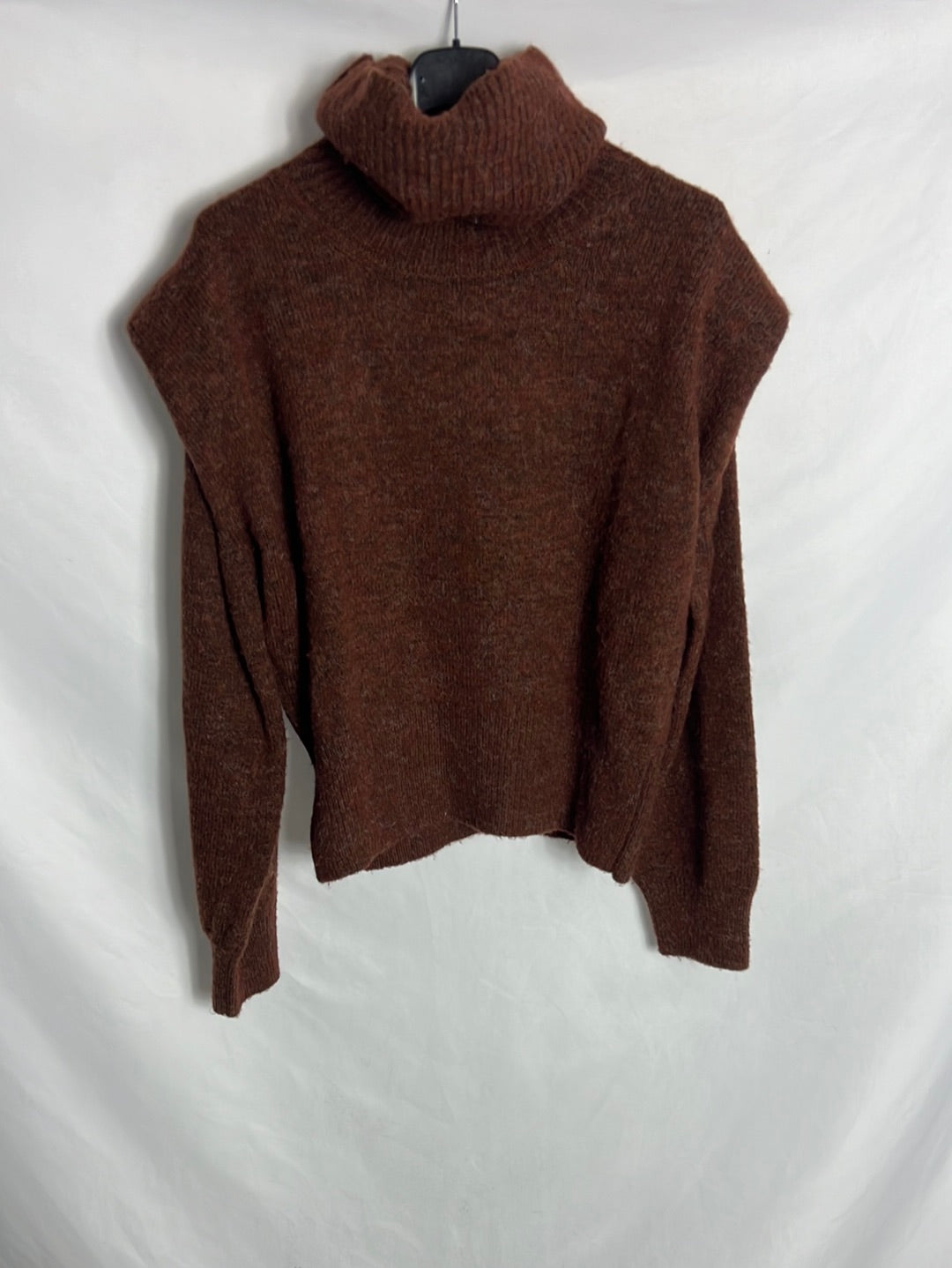 Jersey marrón cuello alto. Tara: tejido zon pelotillas en varias zonas