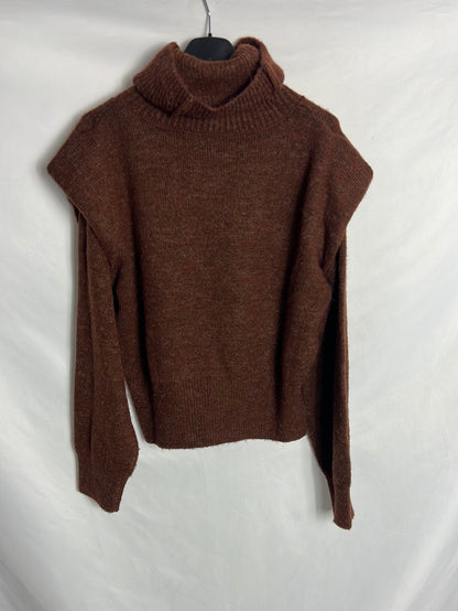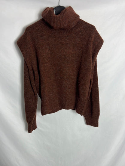MANGO. Jersey marrón cuello alto TS