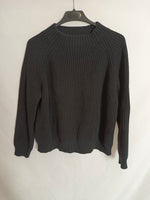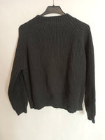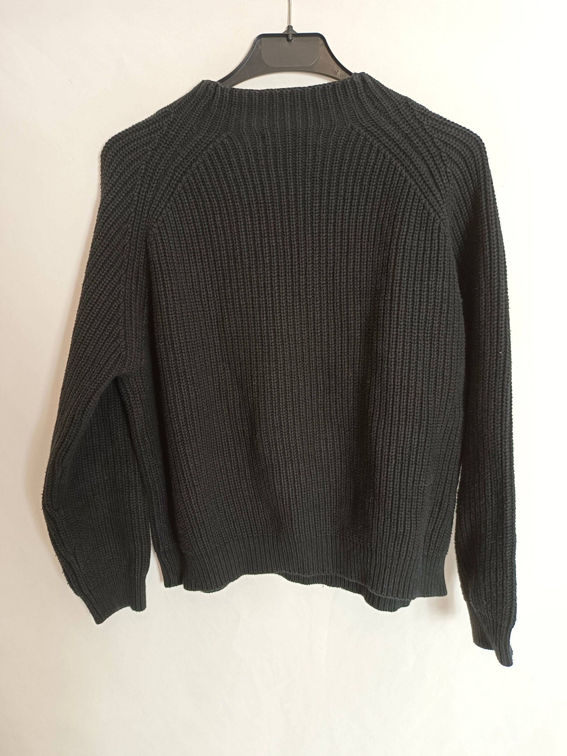 jersey negro de punto cortito con el cuello ligeramente elevado. Tara:cuello un poco desgastado