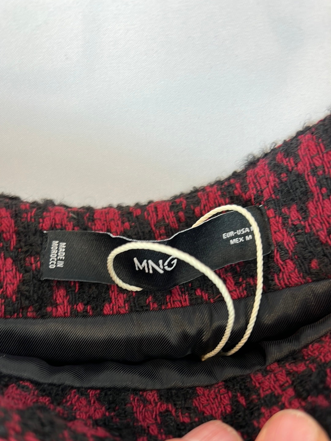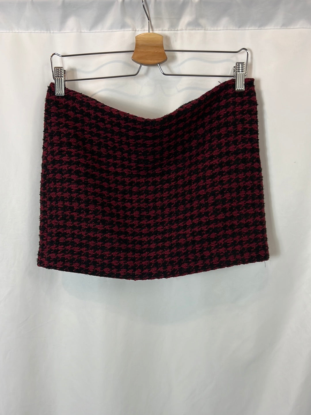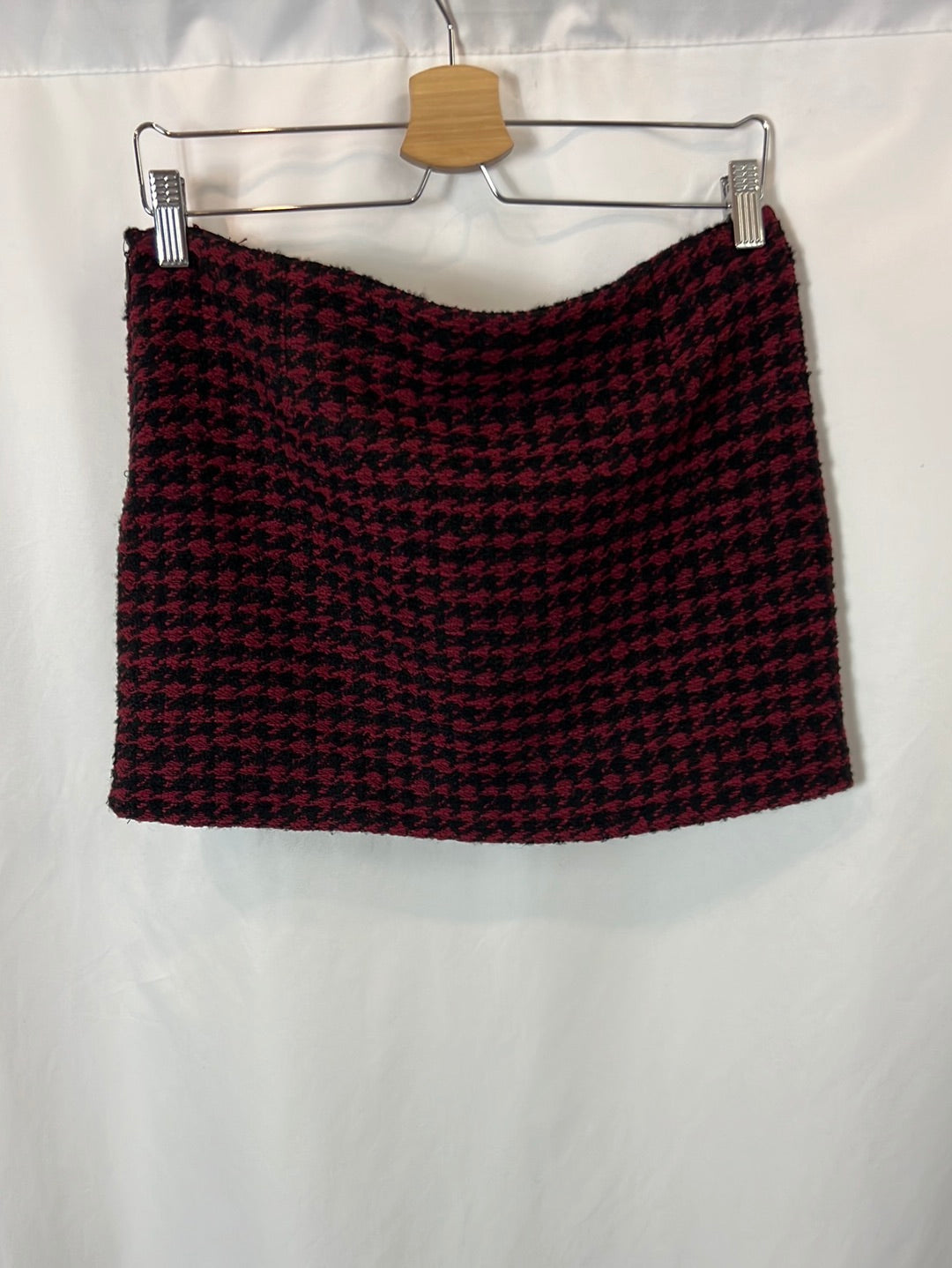 Falda corta de pata de gallo negro y cintura burdeos.42cm, largo 34cm