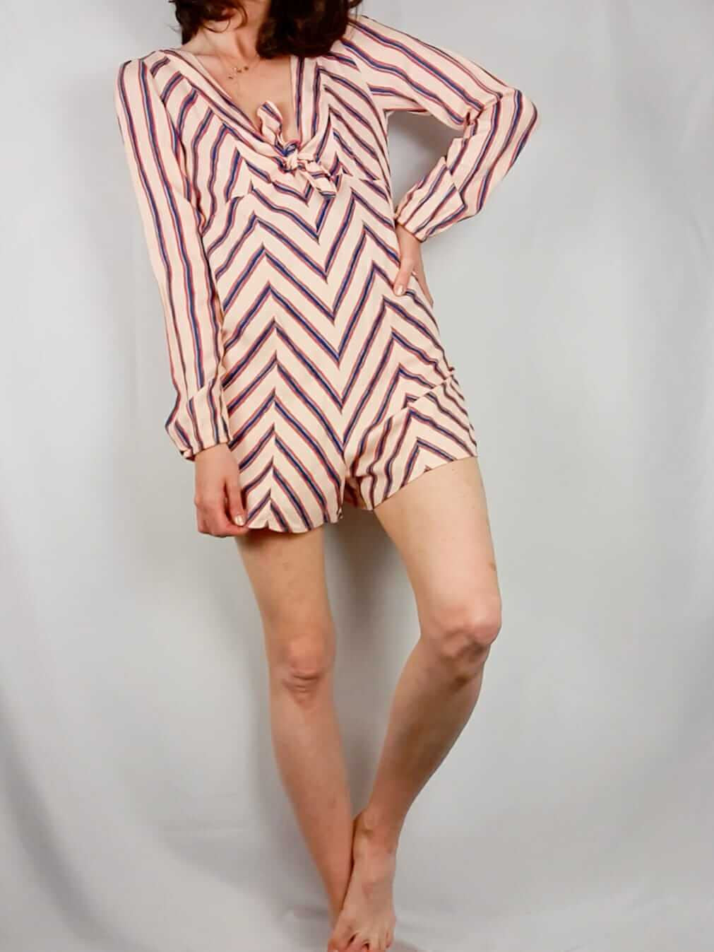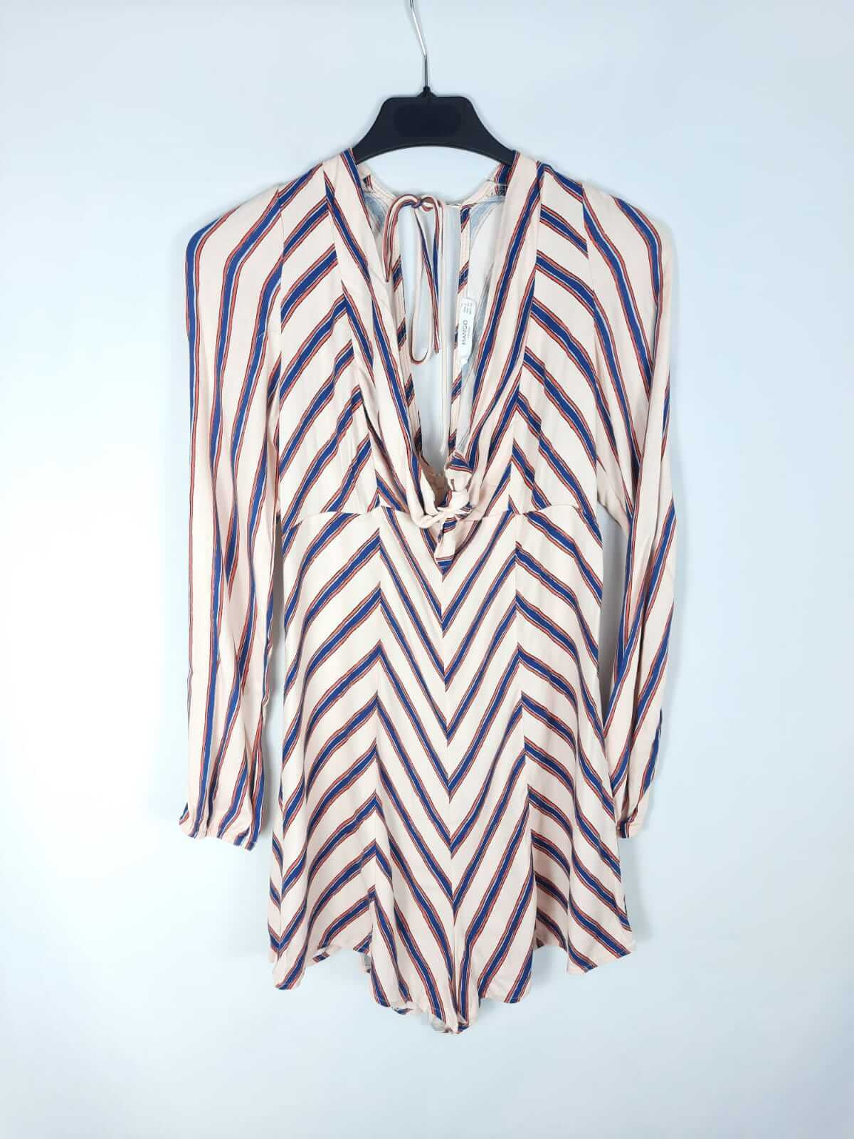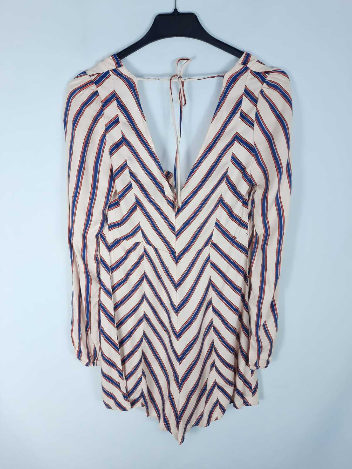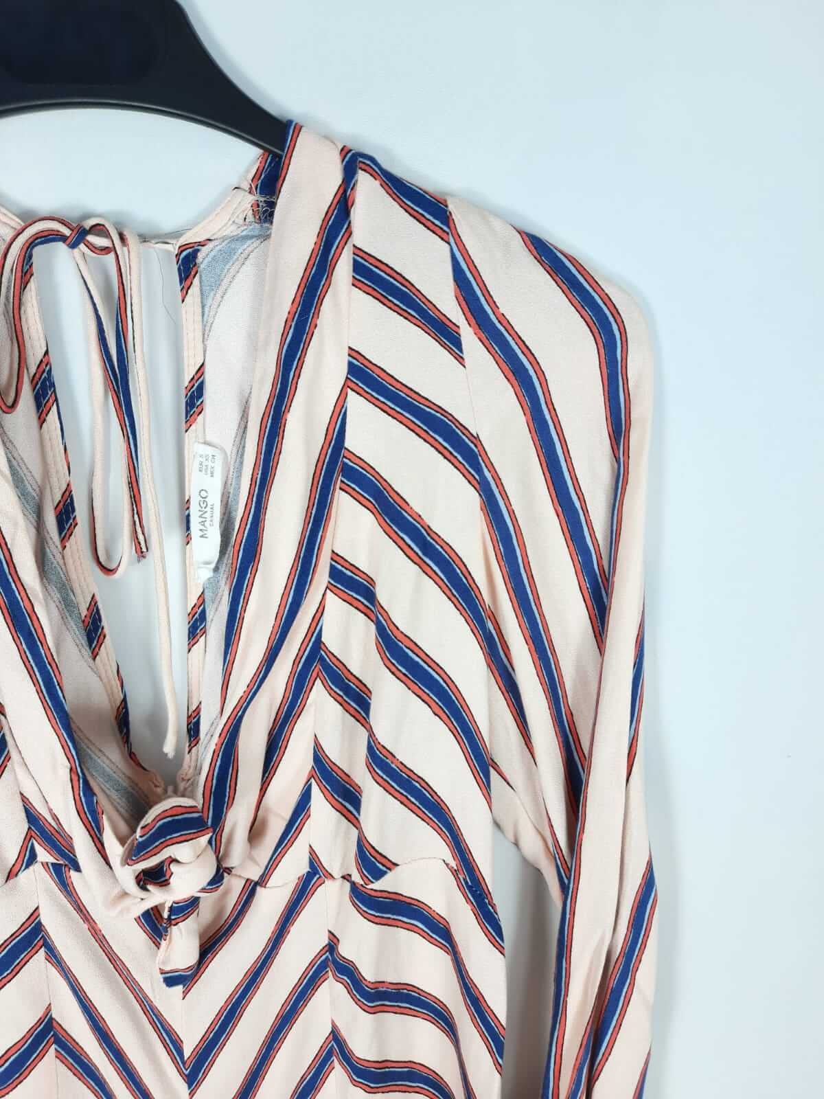 Mango. Mono rosa de rayas azules y rojas con lazada en el escote y espalda abierta. No elástico. De sisa a sisa 33 cm cintura 34 cm largo 77cm