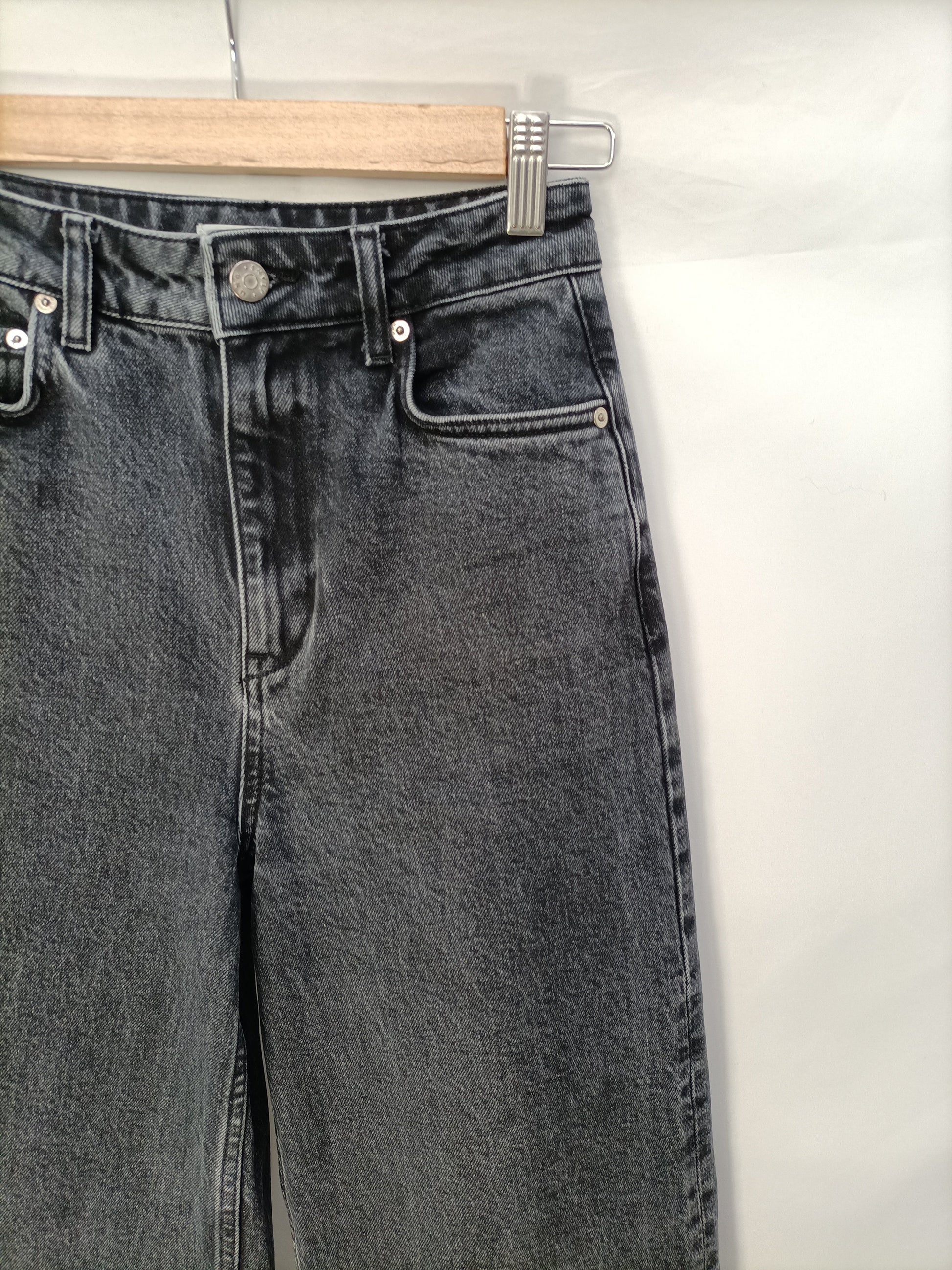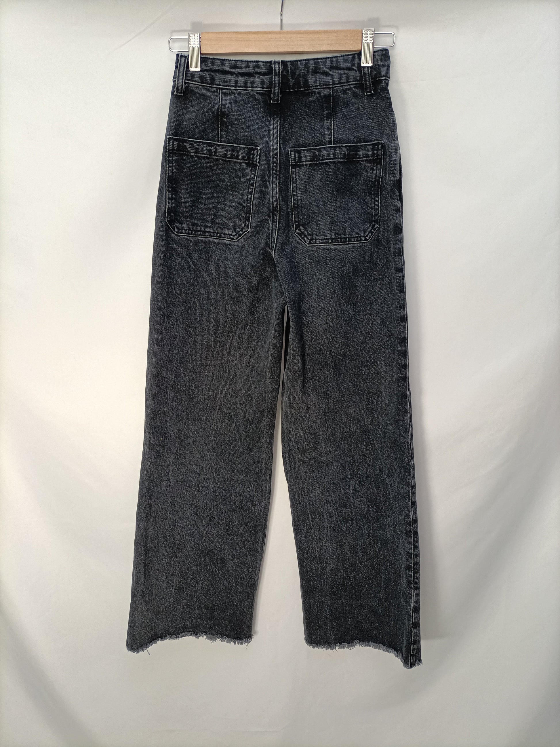 Pantalón ancho negro estilo wide leg tobillero. No elastico. Cintura 32 Largo 102 cm