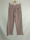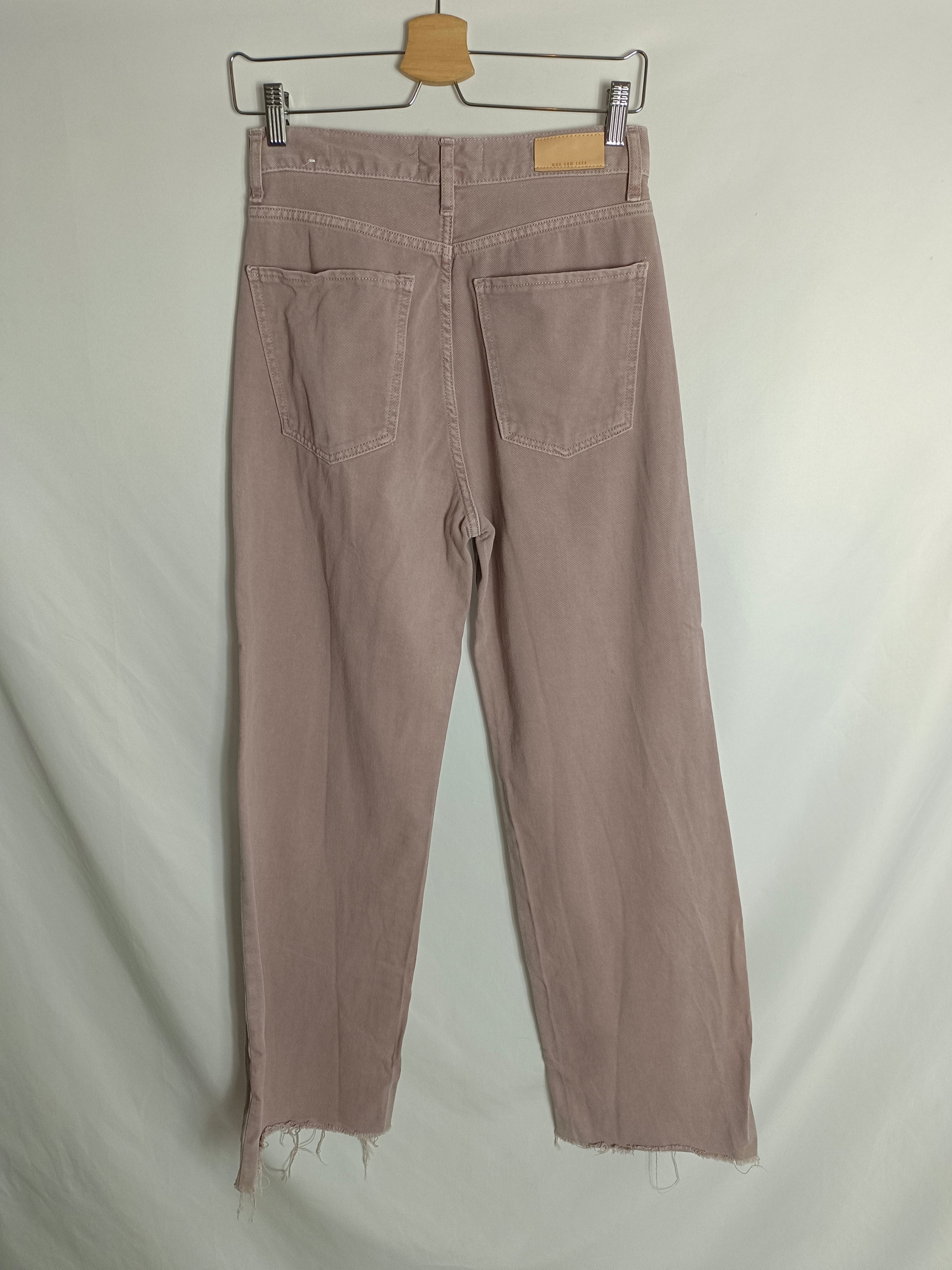 Pantalón denim rosa ancho denim. cintura 35 cm. tara:zonas con marcas de lavado.