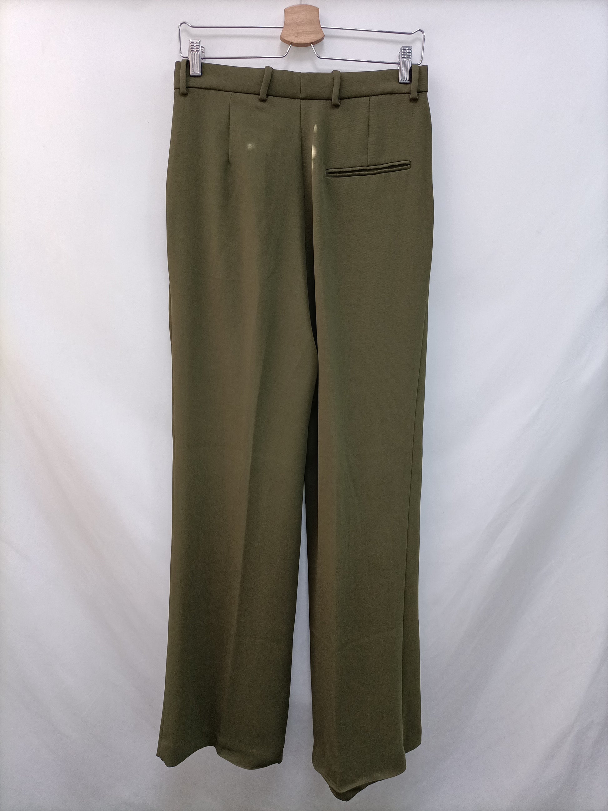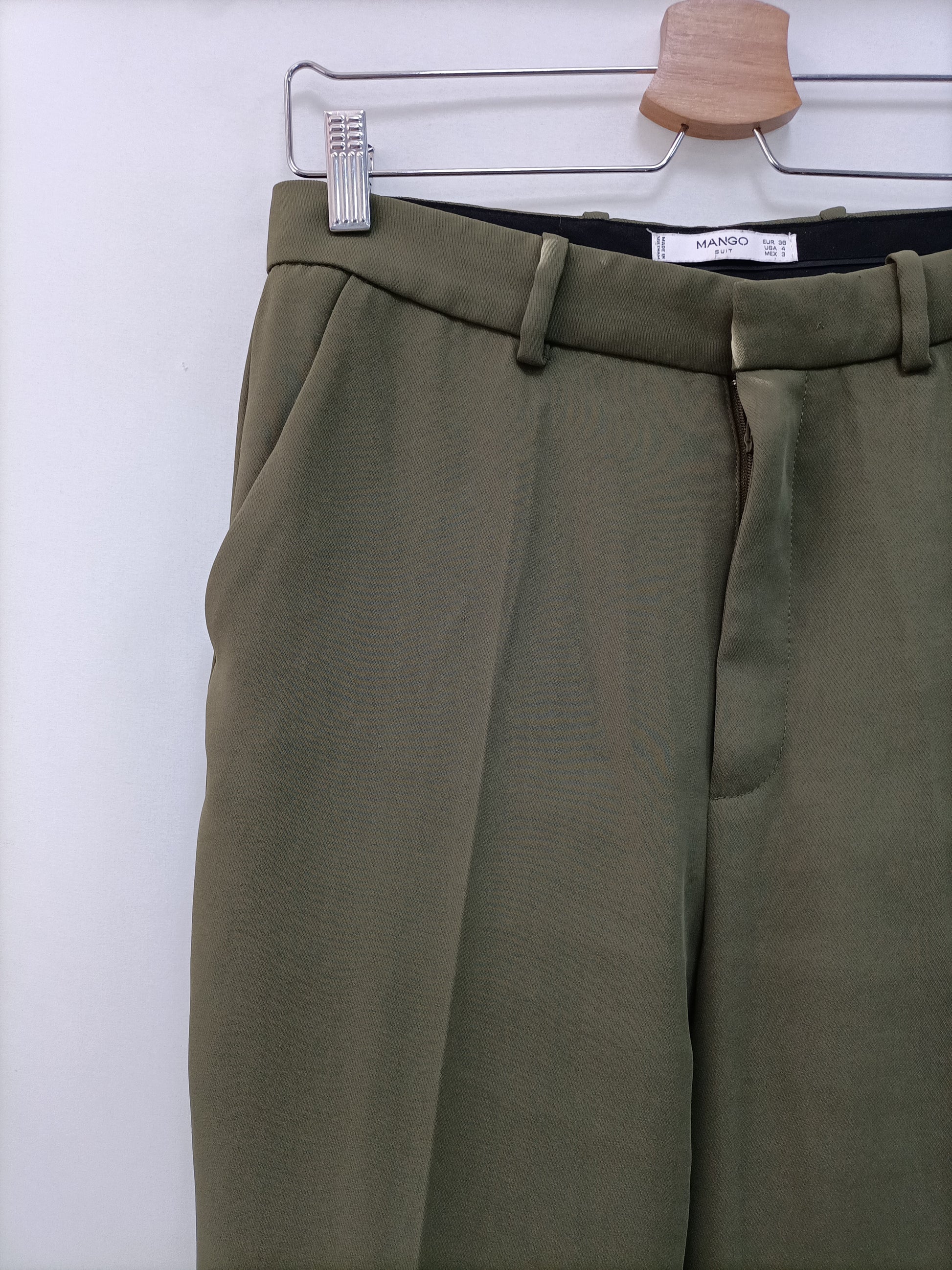 MANGO. Pantalón ancho verde T.36 (TARA)