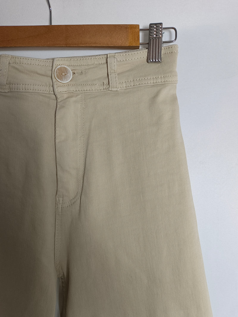 Pantalón denim beige estilo culotte alto de cintura. cintura 32 cm