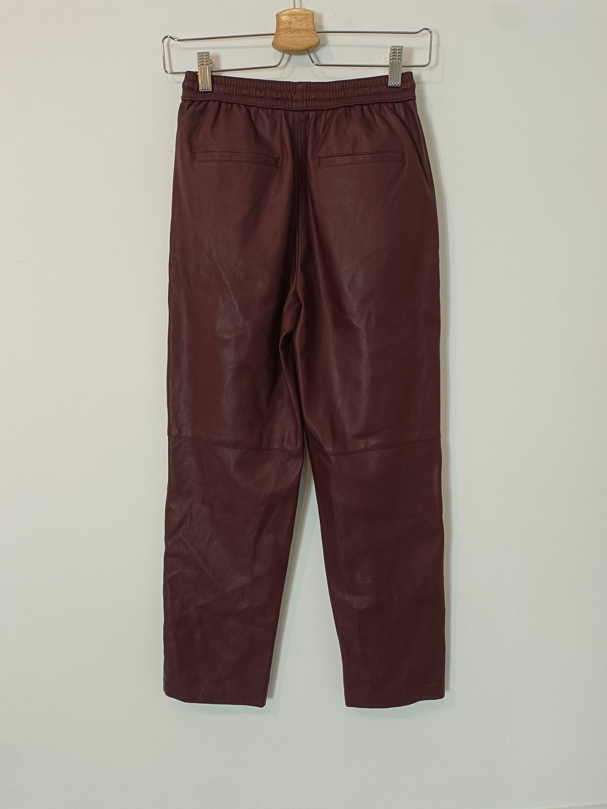 MANGO. Pantalón burdeos efecto piel T.xxs