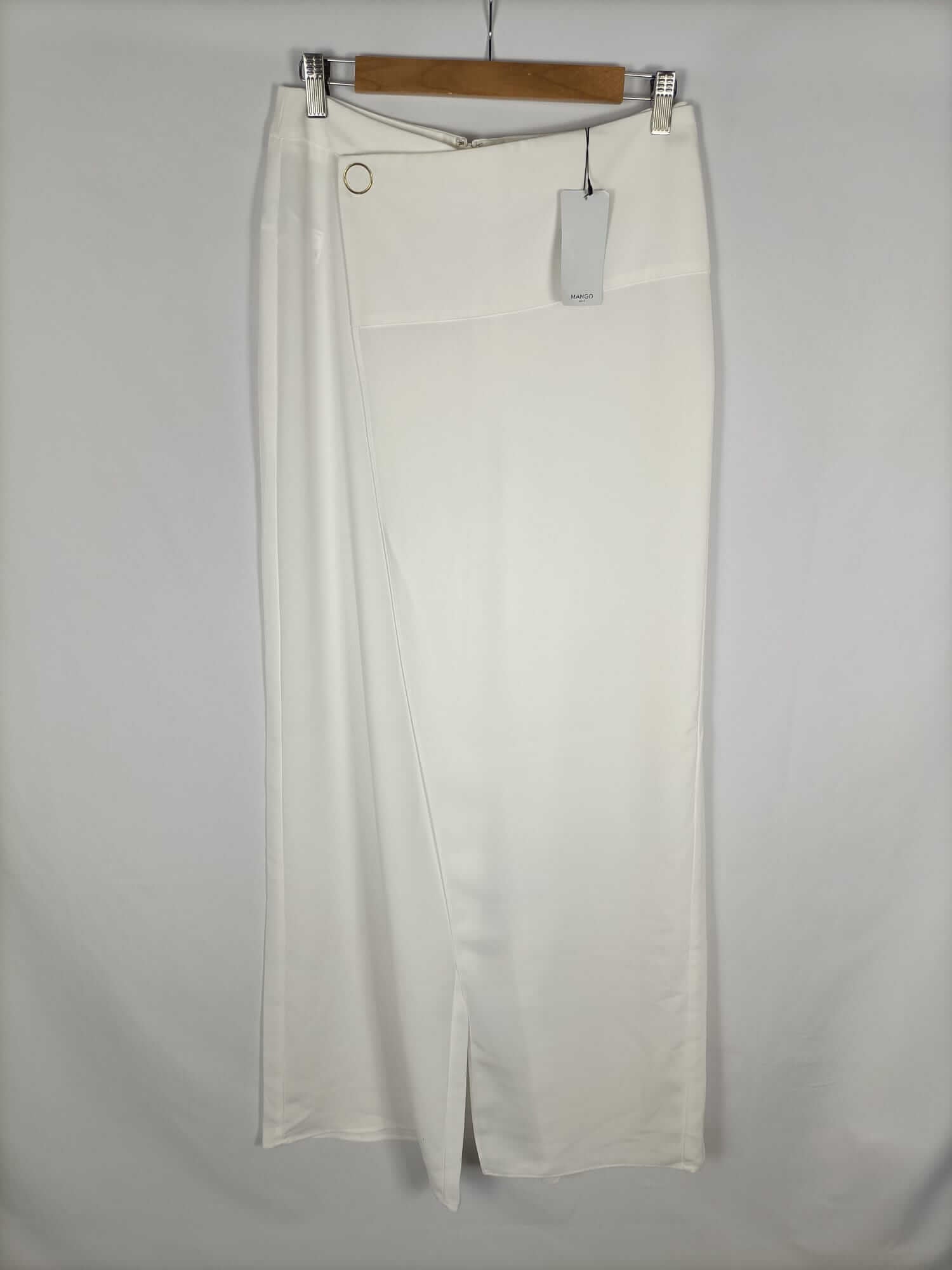 Mango. 38. NUEVO CON ETIQUETA. Pantalón Palazzo blanco estilo falda pareo cruzado. No elástico. Fluido y finito. Cintura 38 cm largo 119 cm