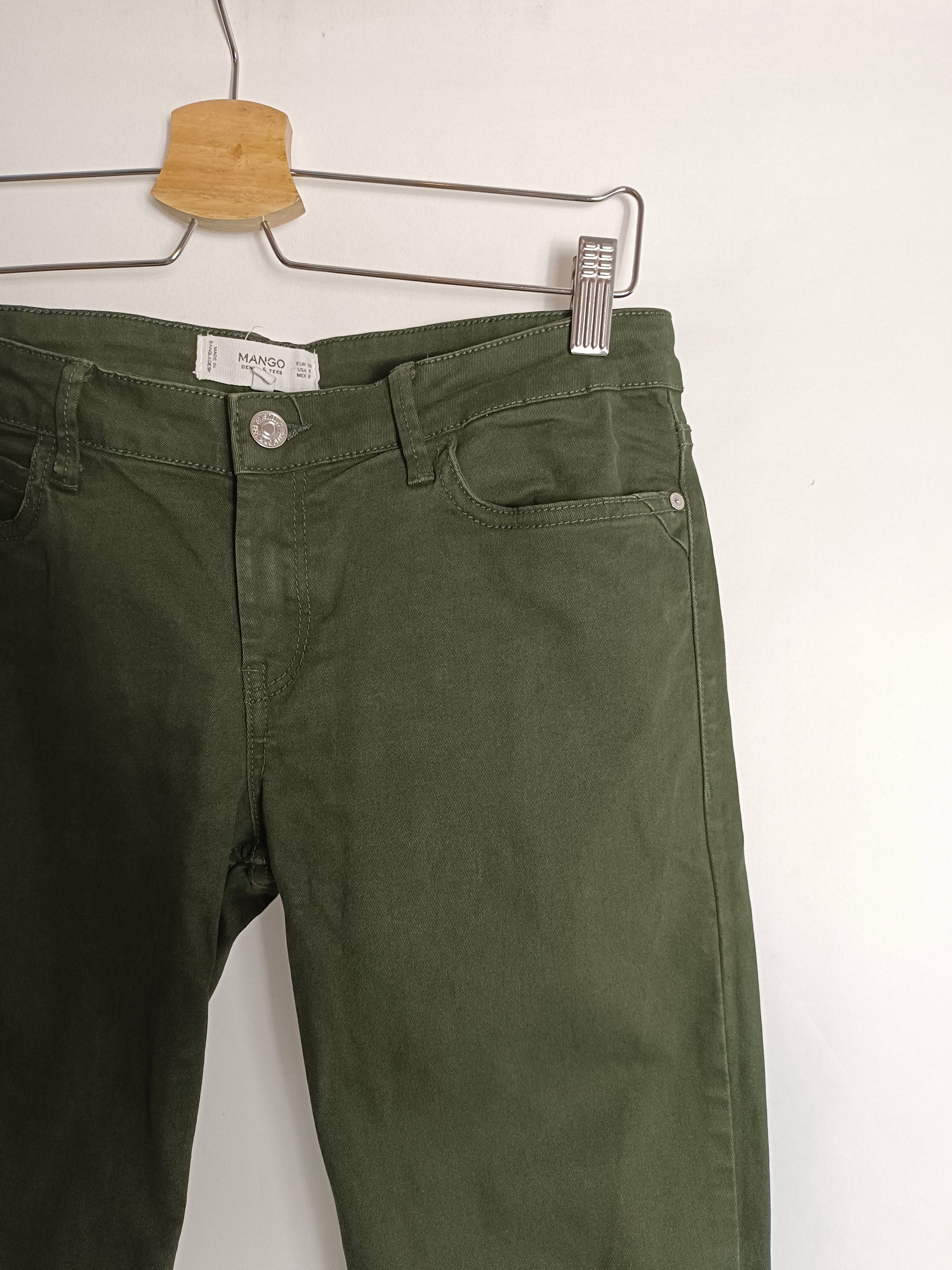 MANGO. Pantalón denim verde T.38
